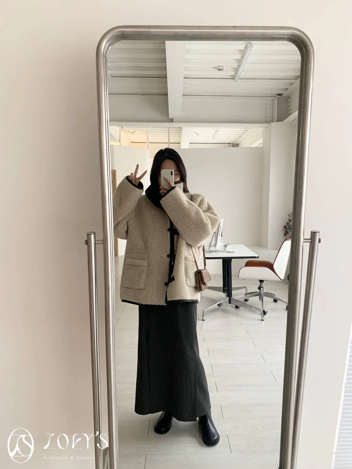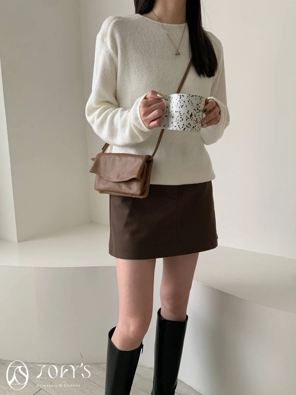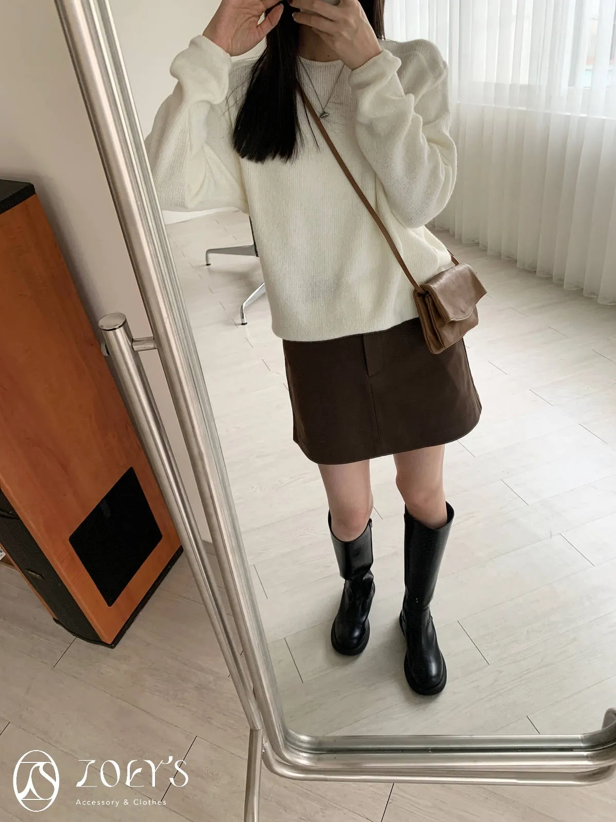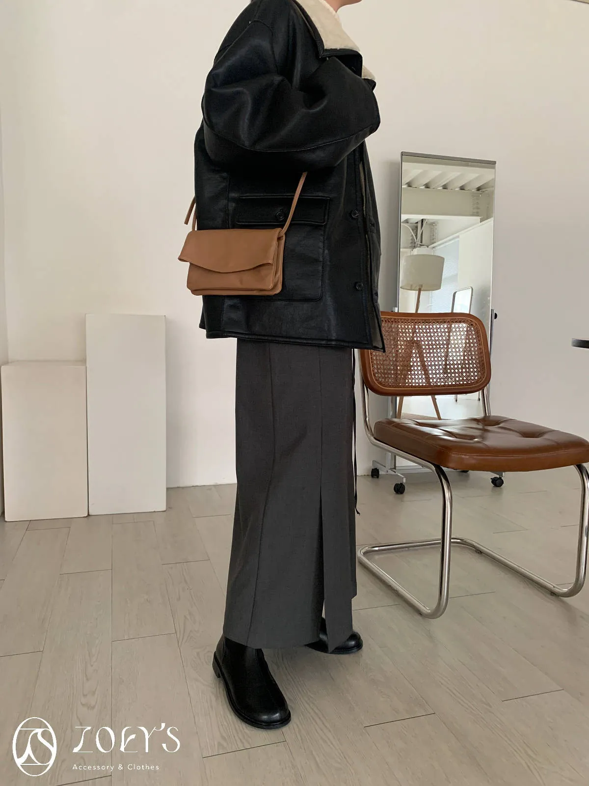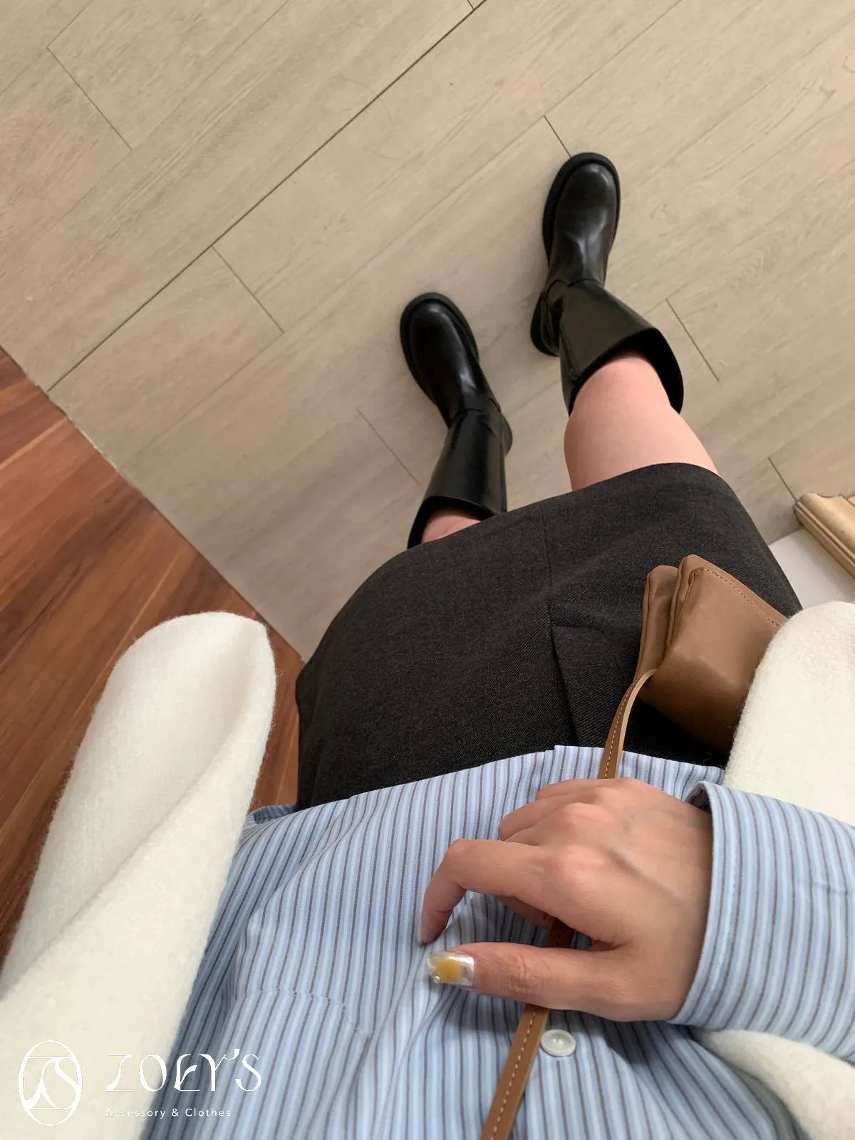 正韓 意外顯瘦腰鬆緊直坑紋開衩裙