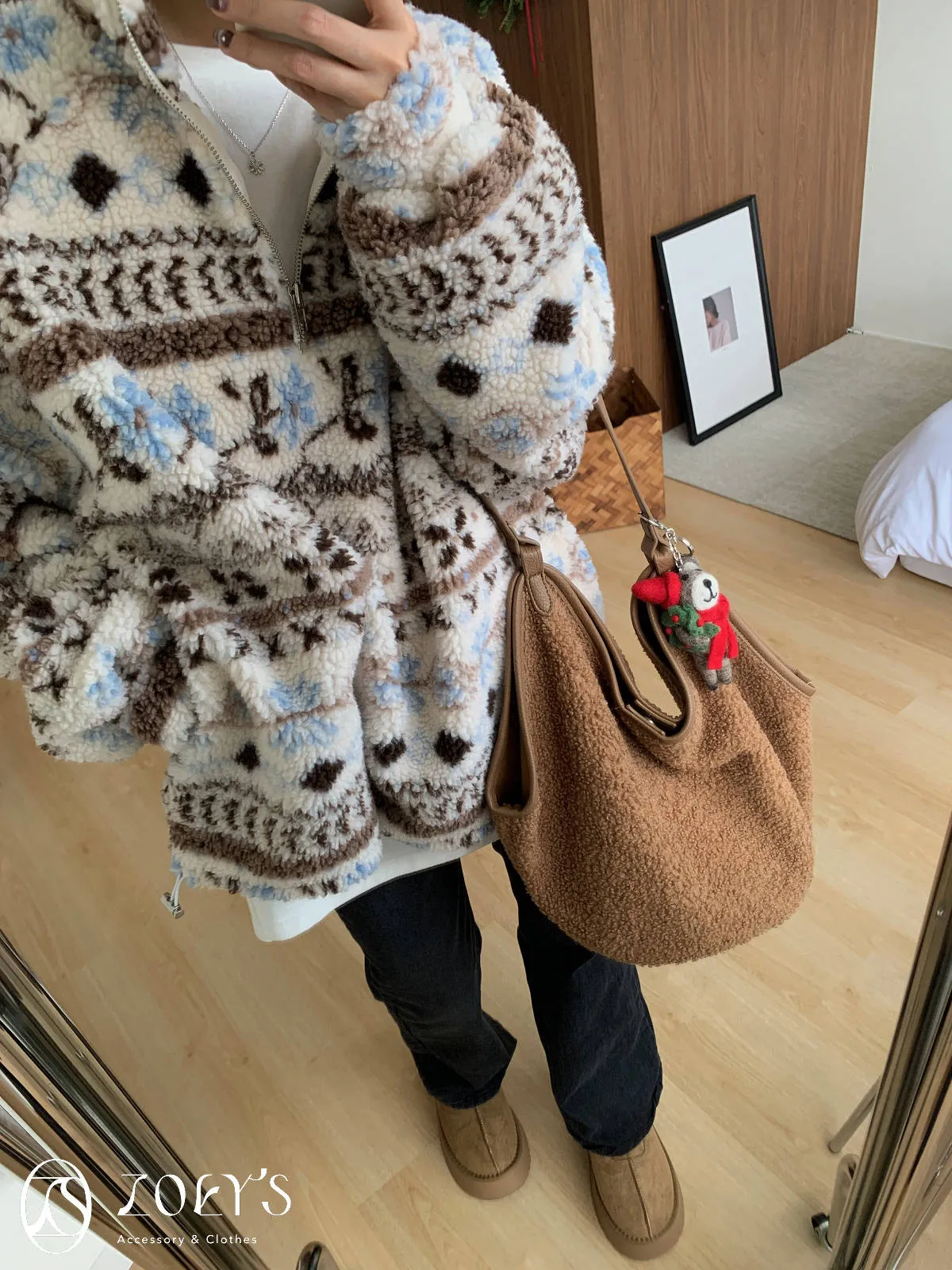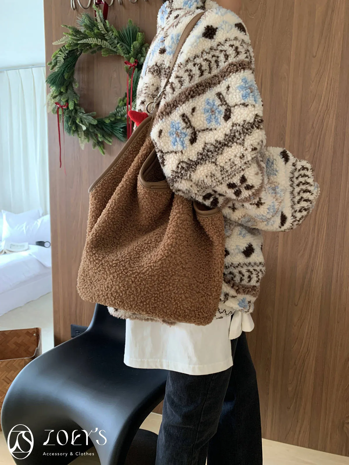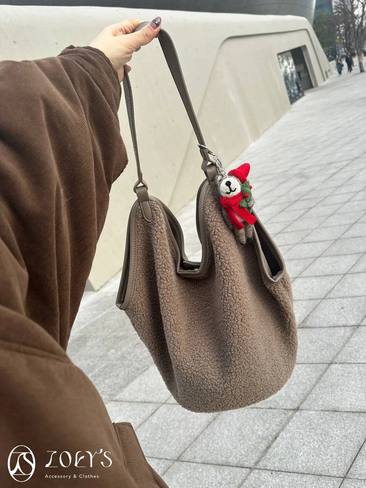 附小包泰迪毛毛圓底包 可可/焦糖咖