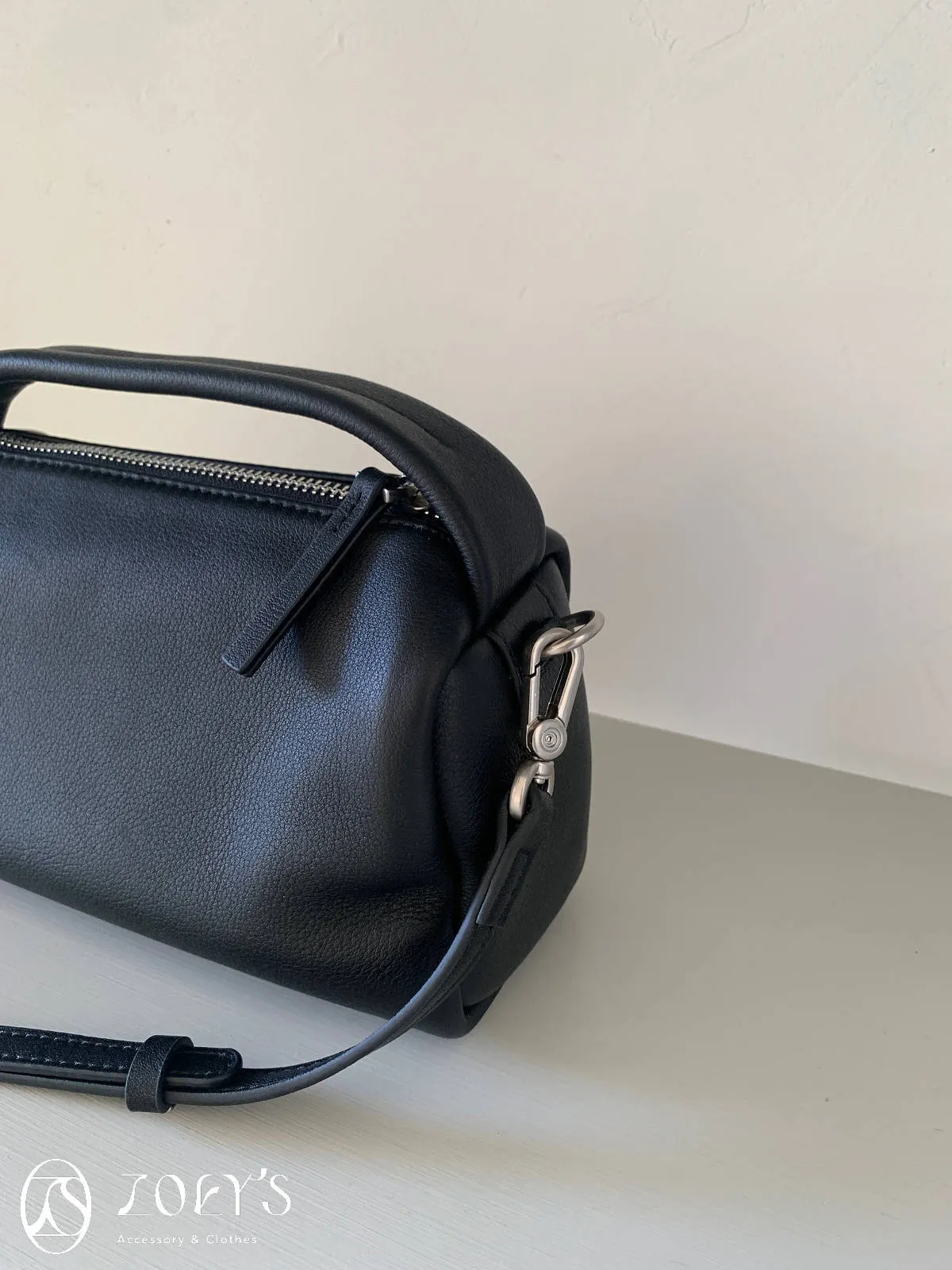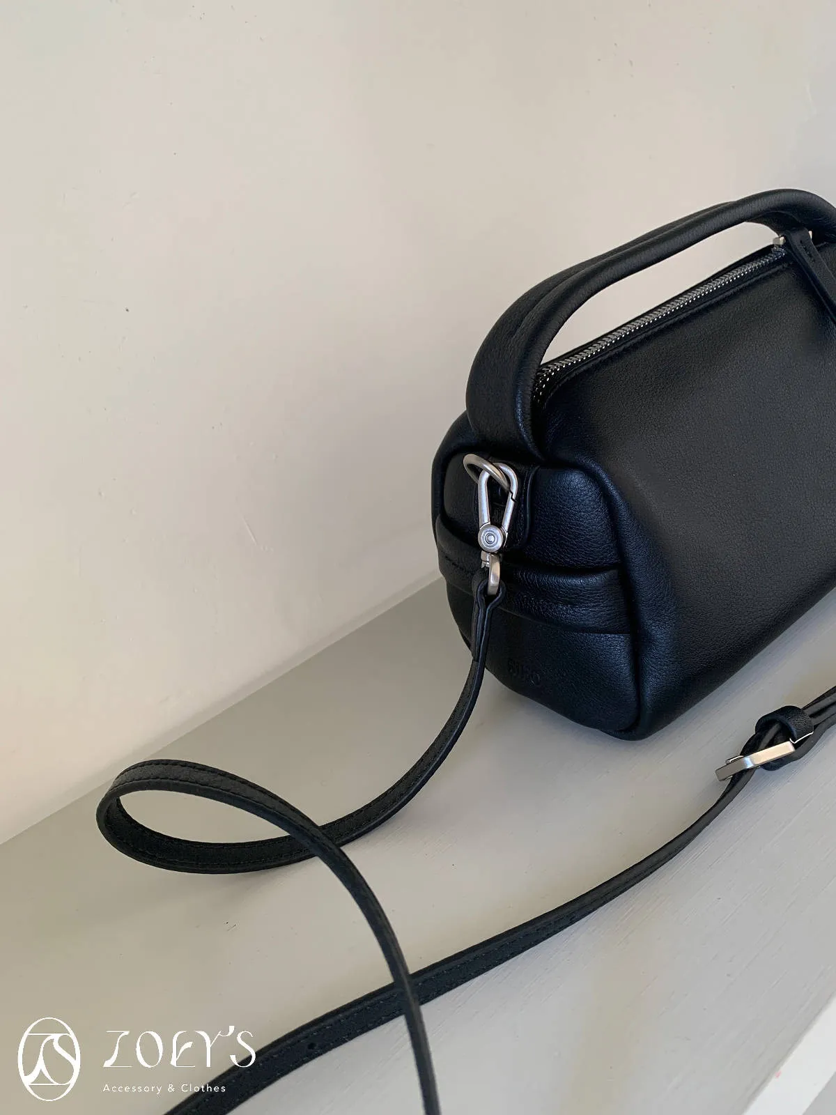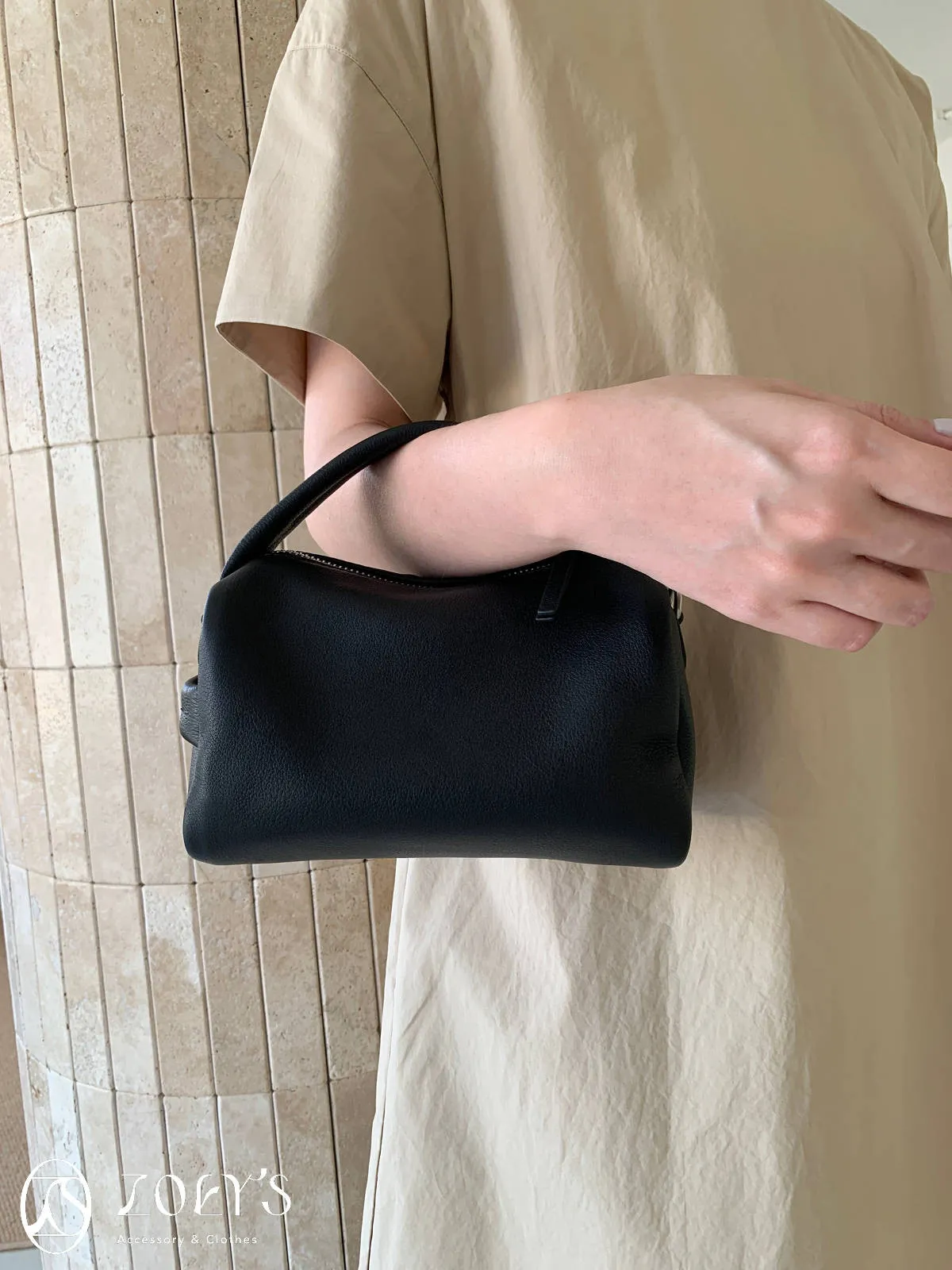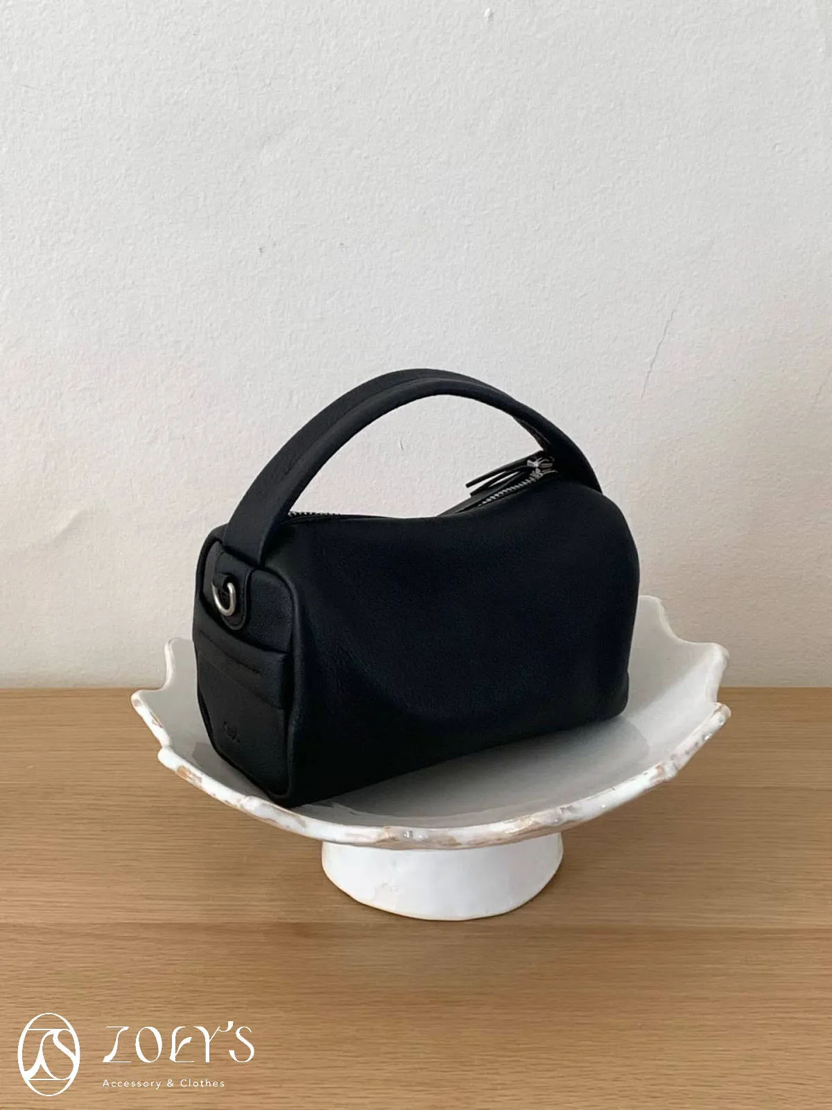 正韓 手感極佳牛皮小包 黑/米白