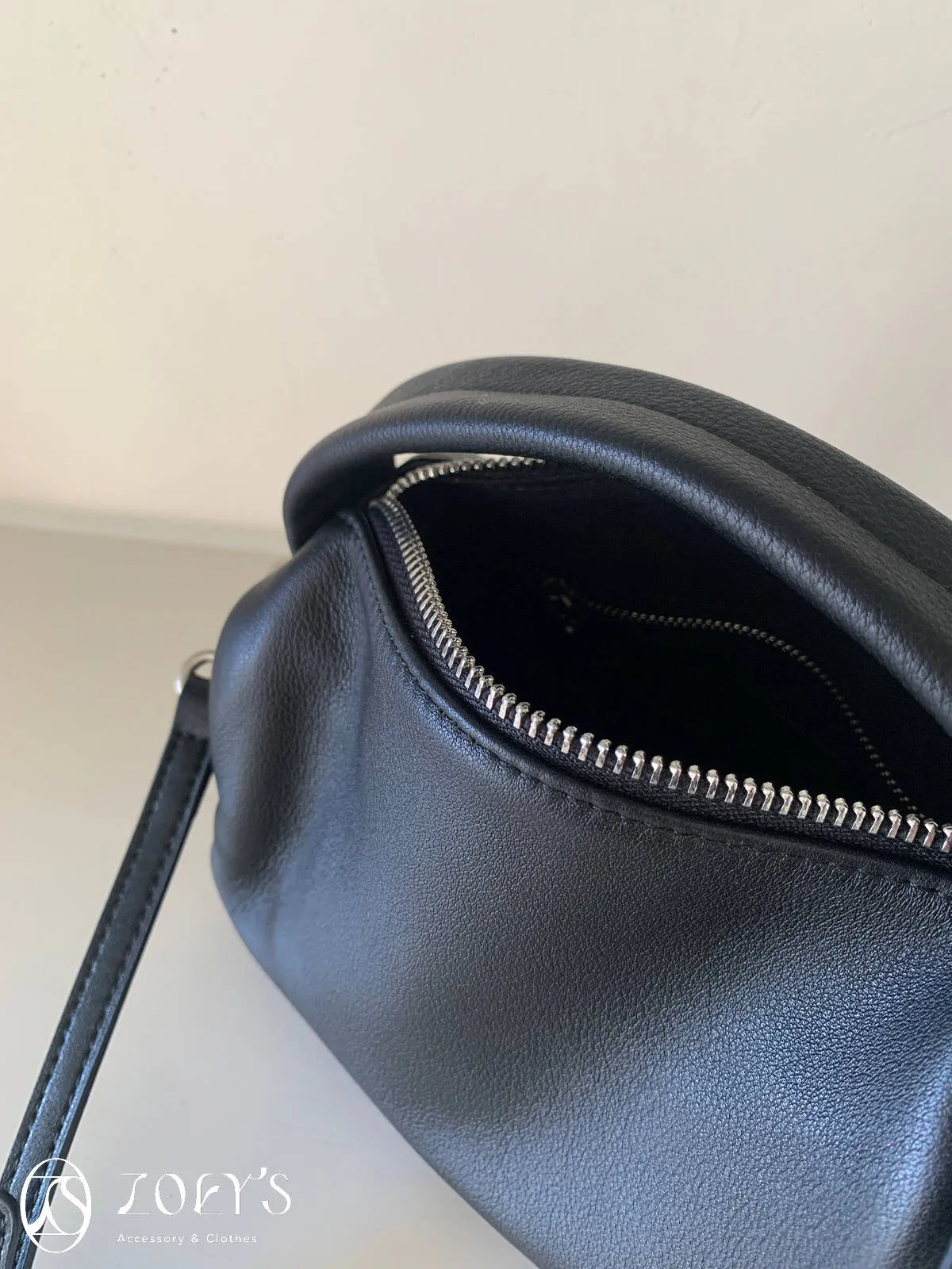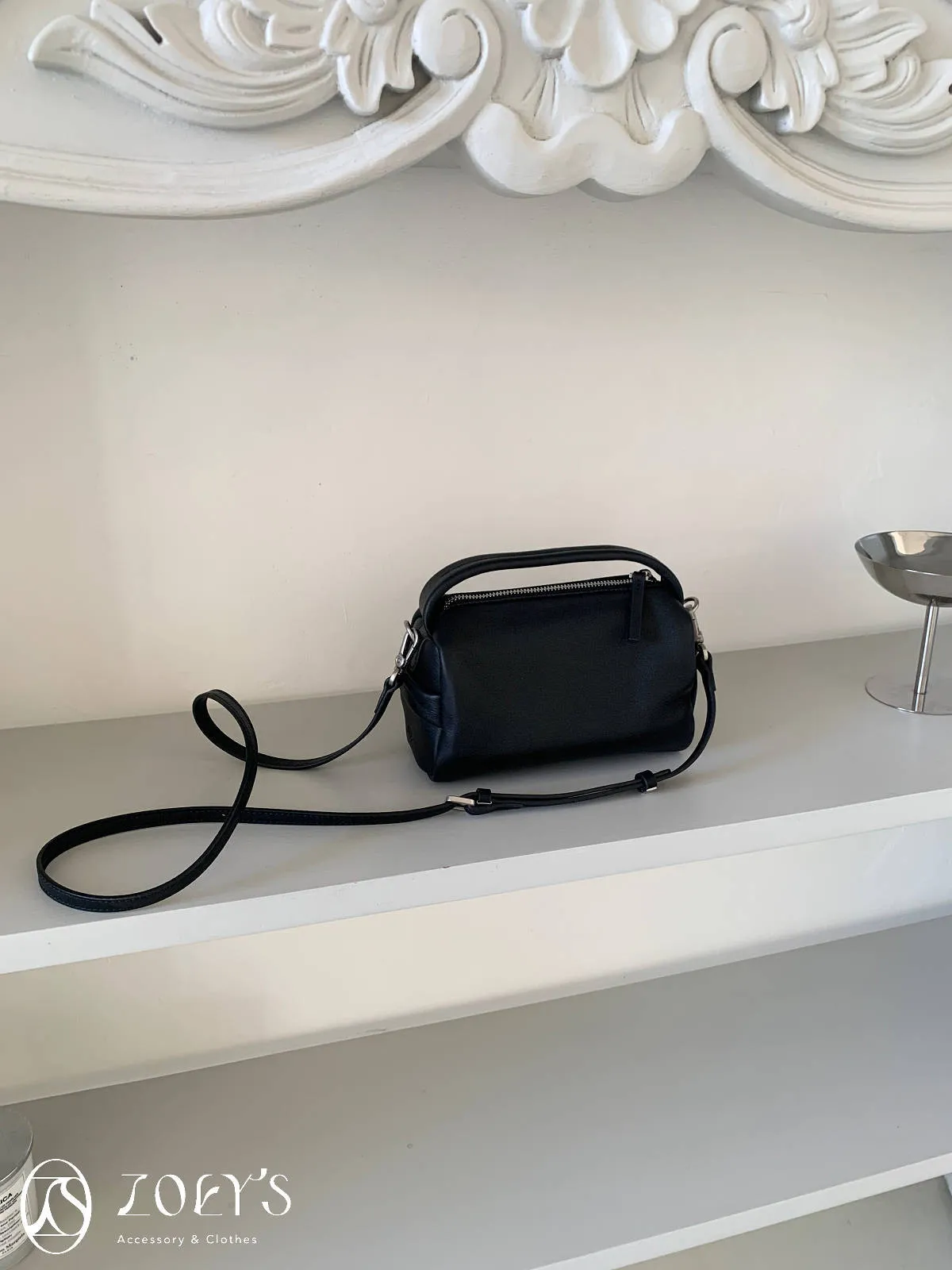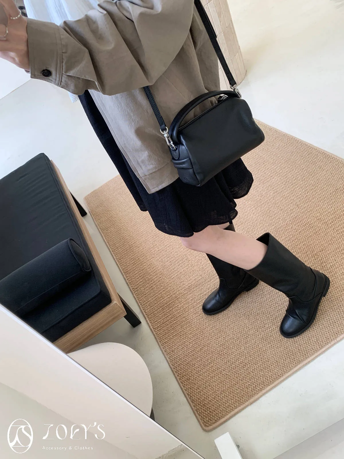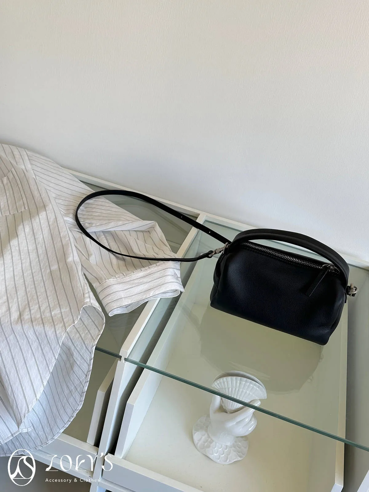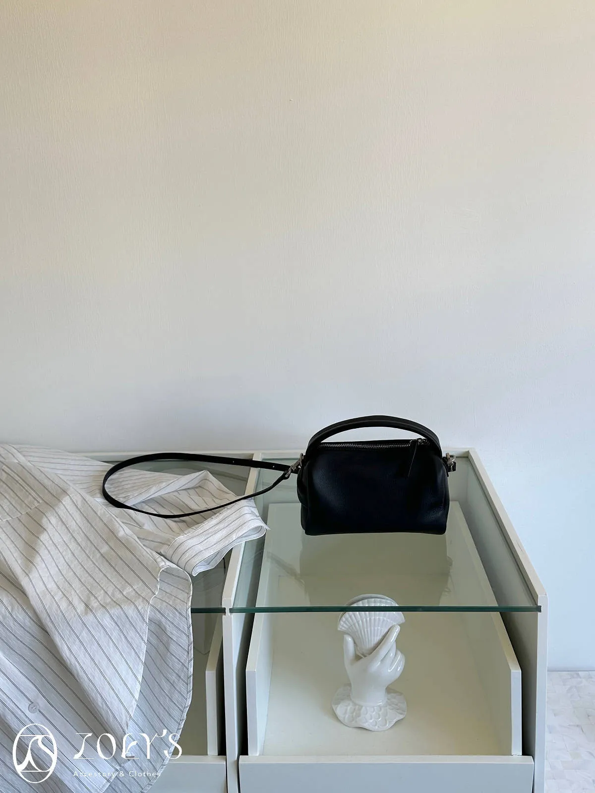 正韓 手感極佳牛皮小包 黑/米白