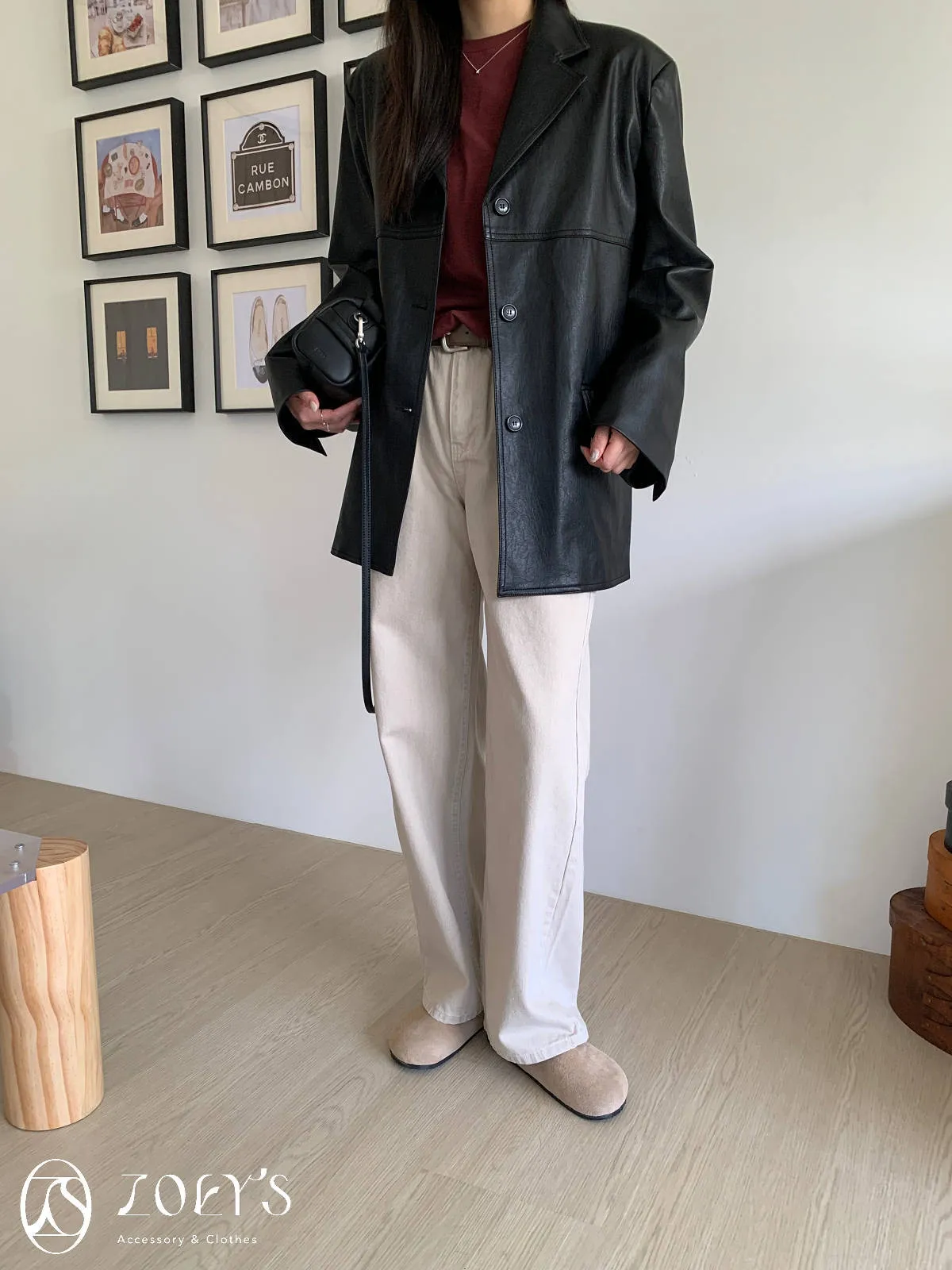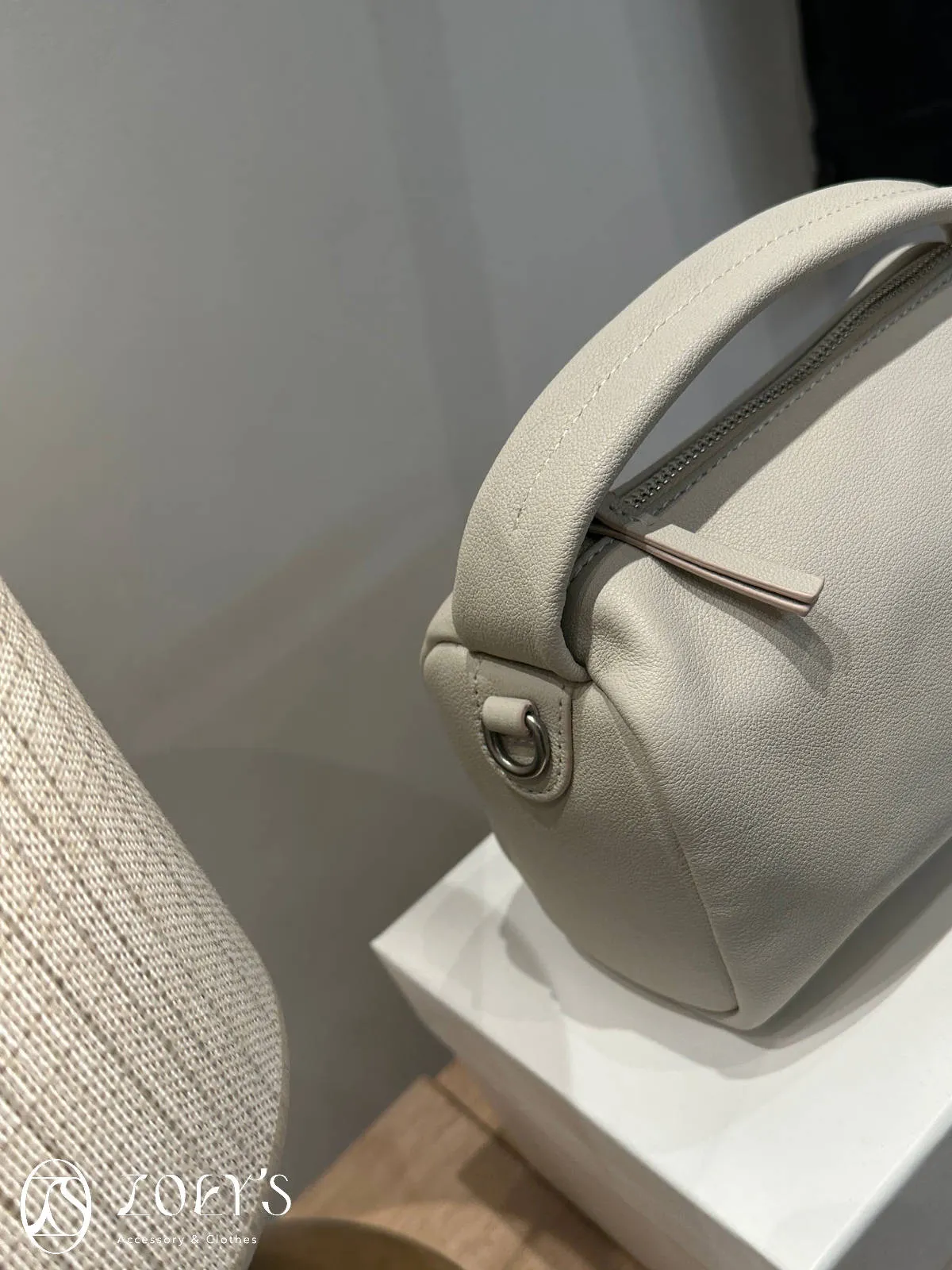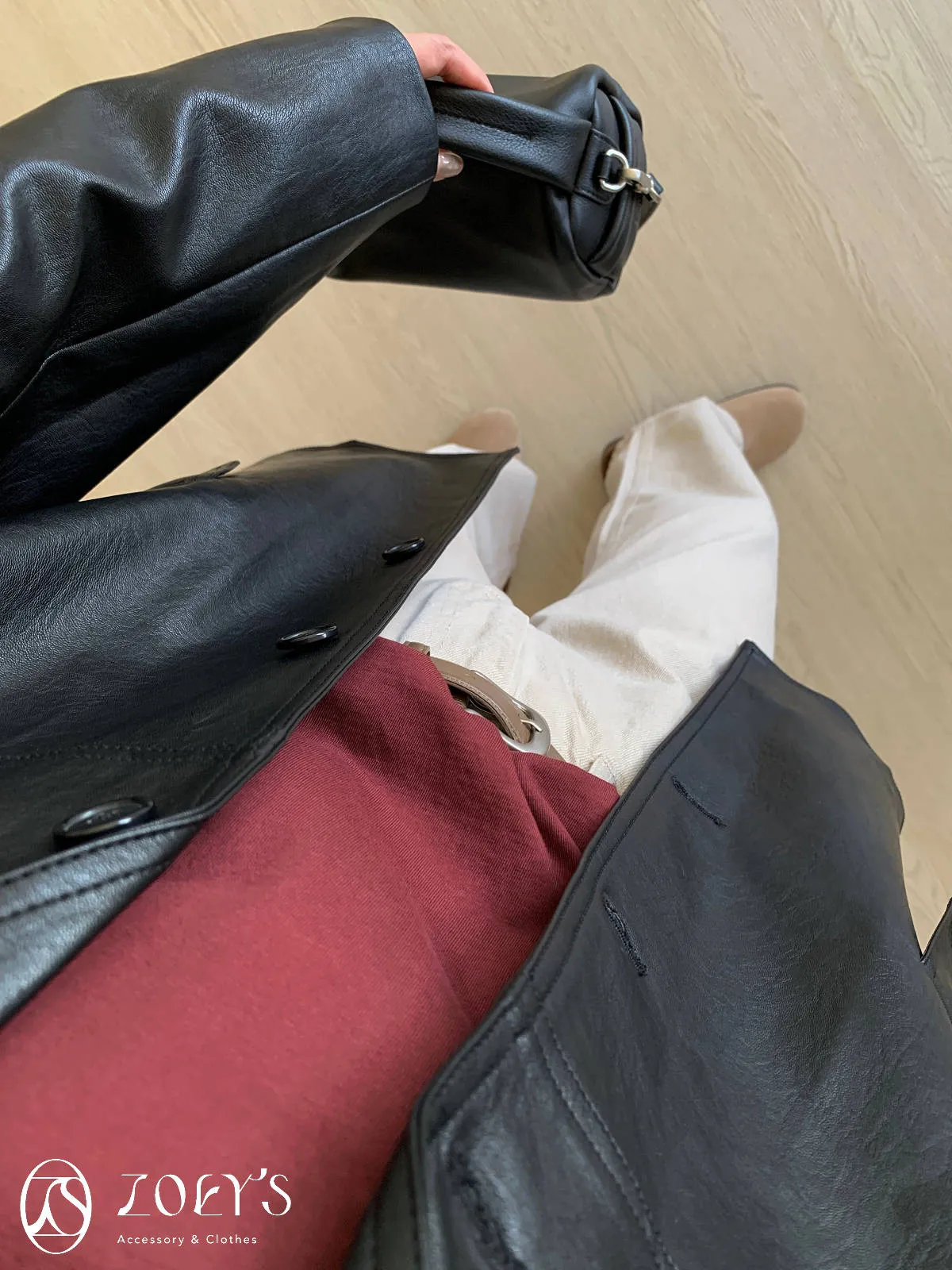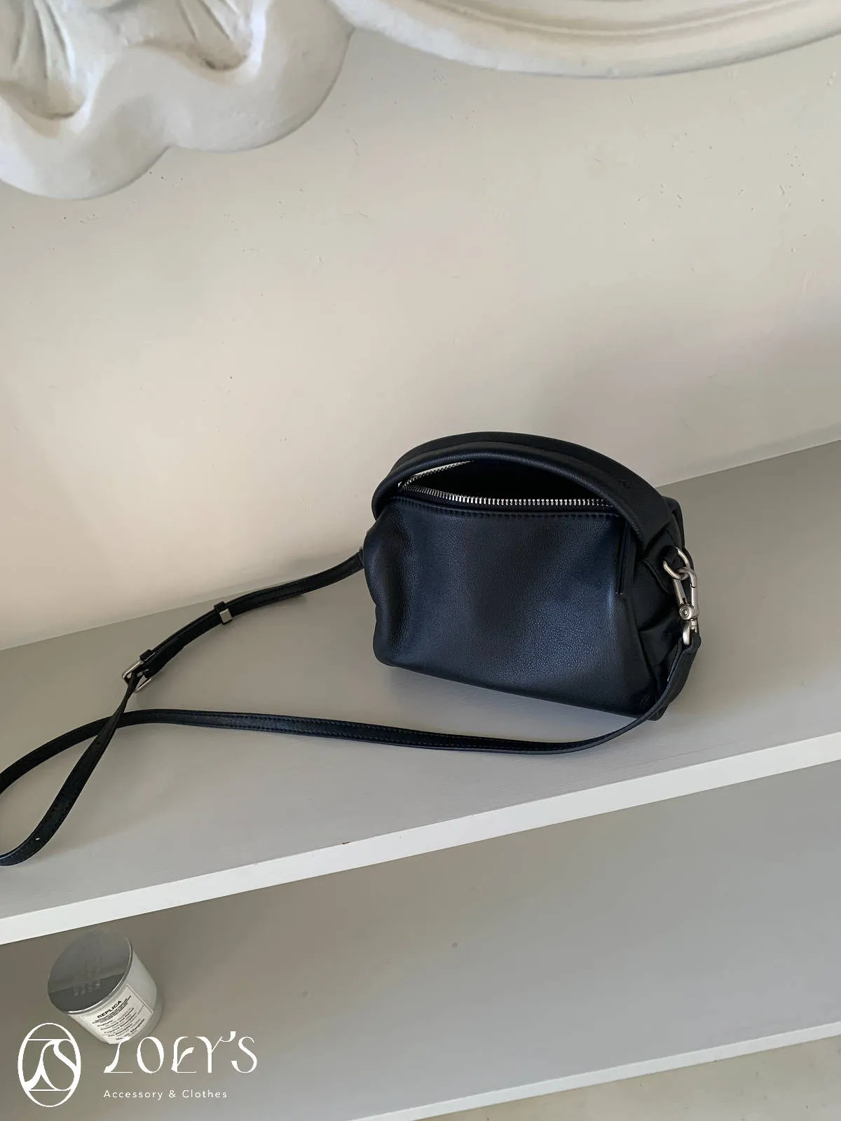正韓 手感極佳牛皮小包 黑/米白