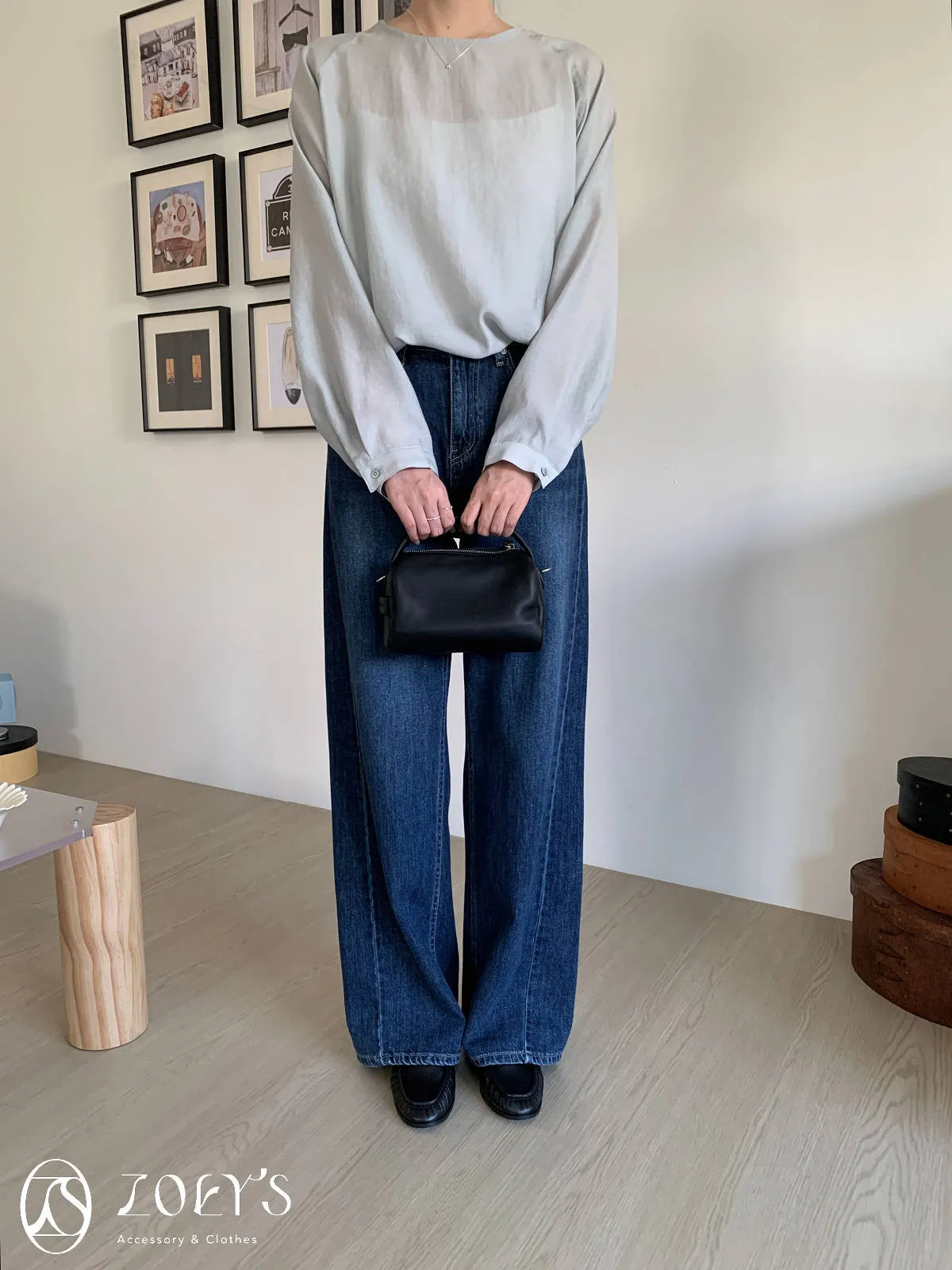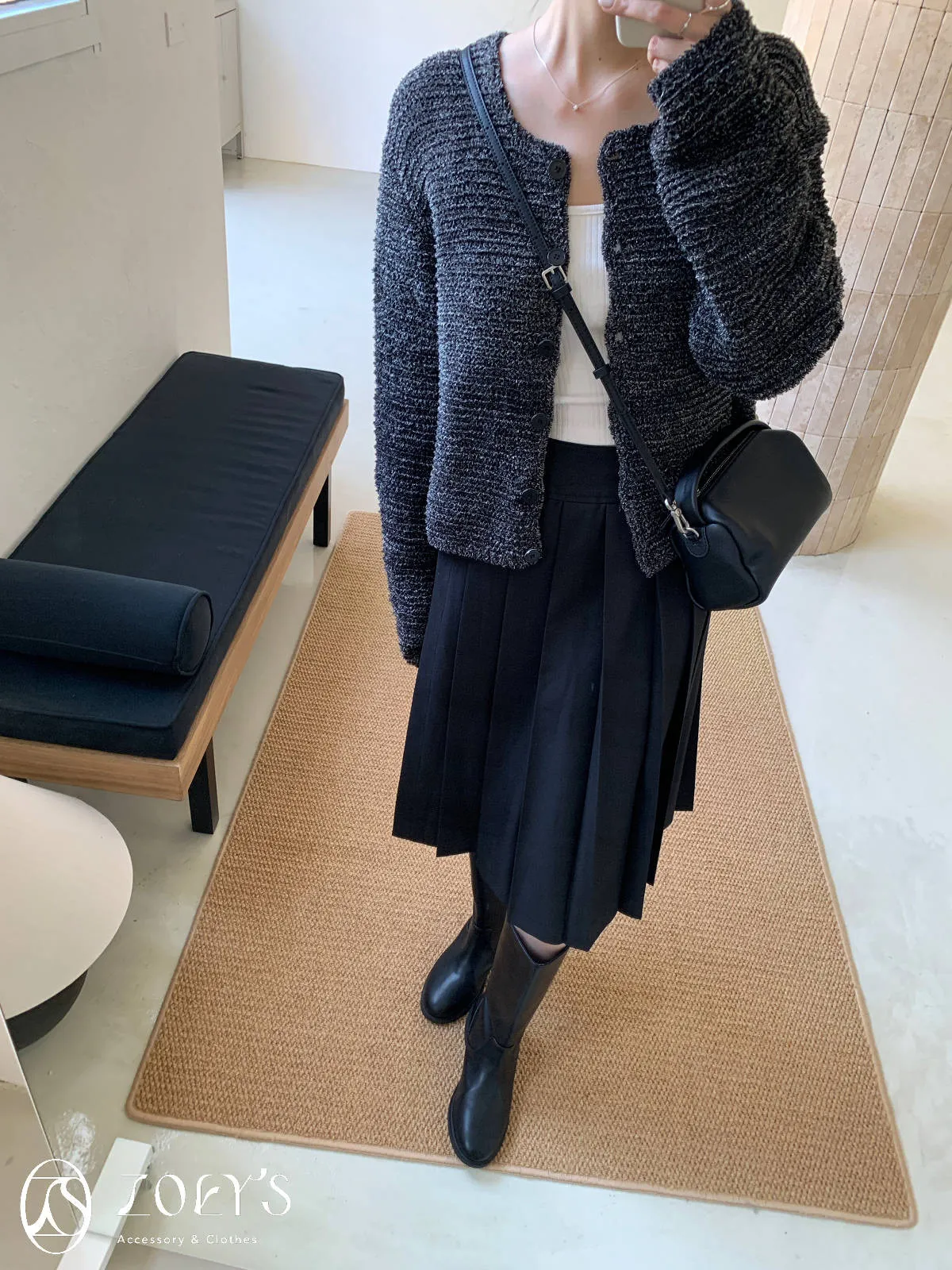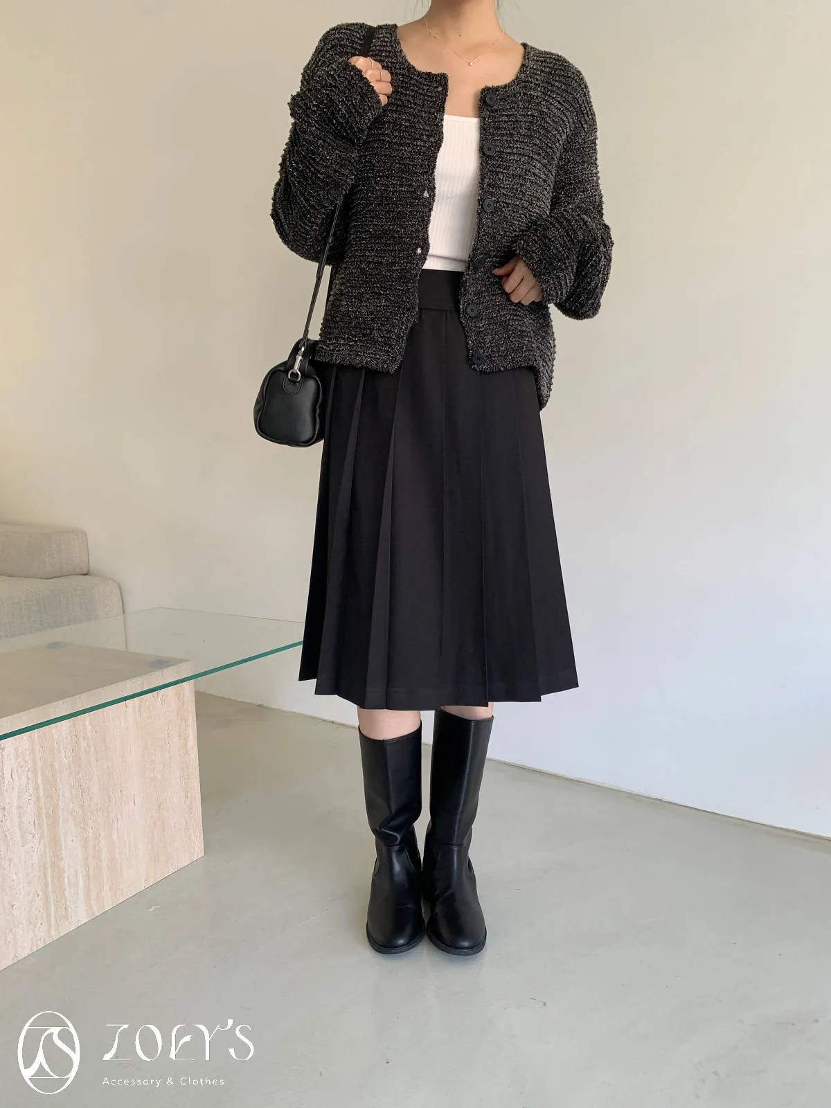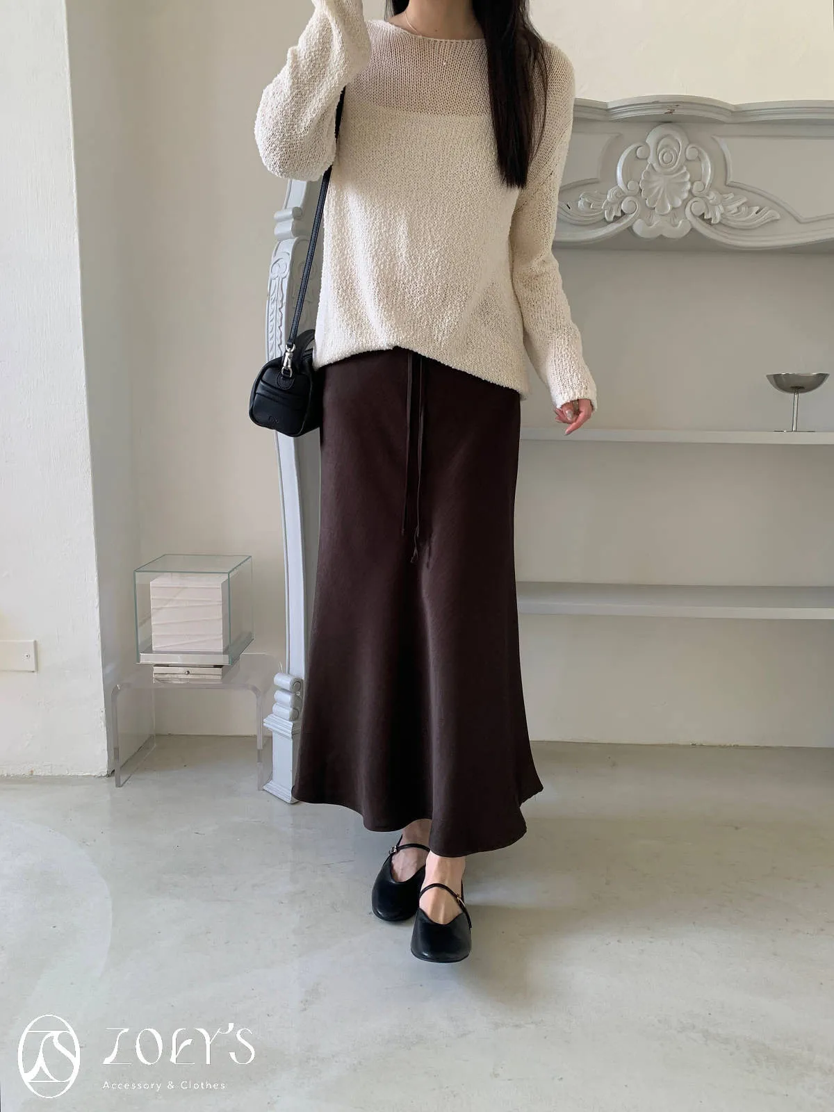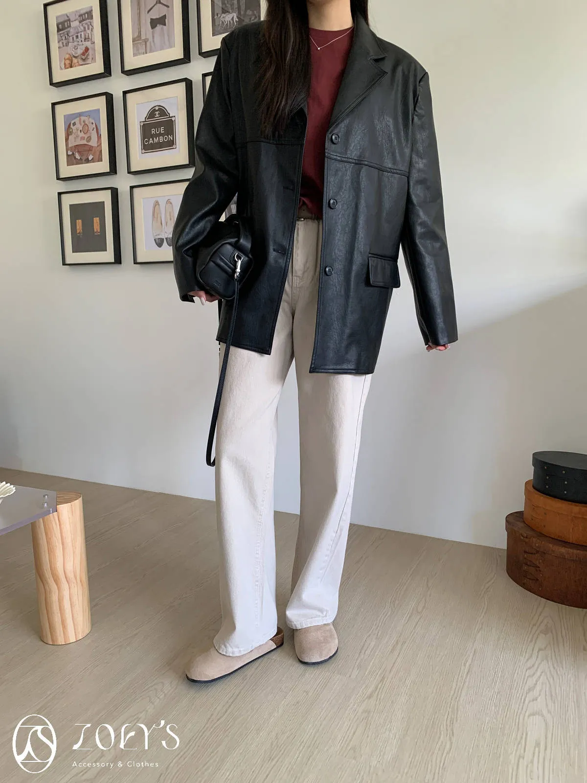 正韓 手感極佳牛皮小包 黑/米白