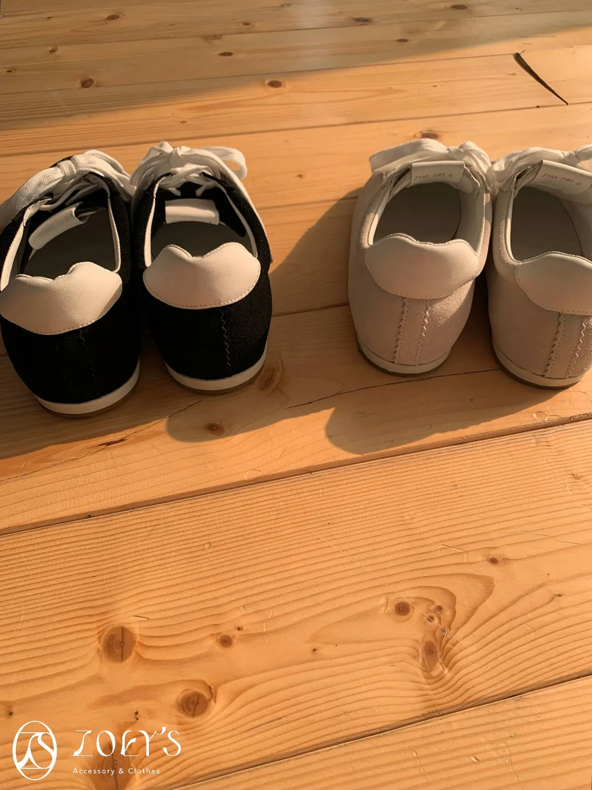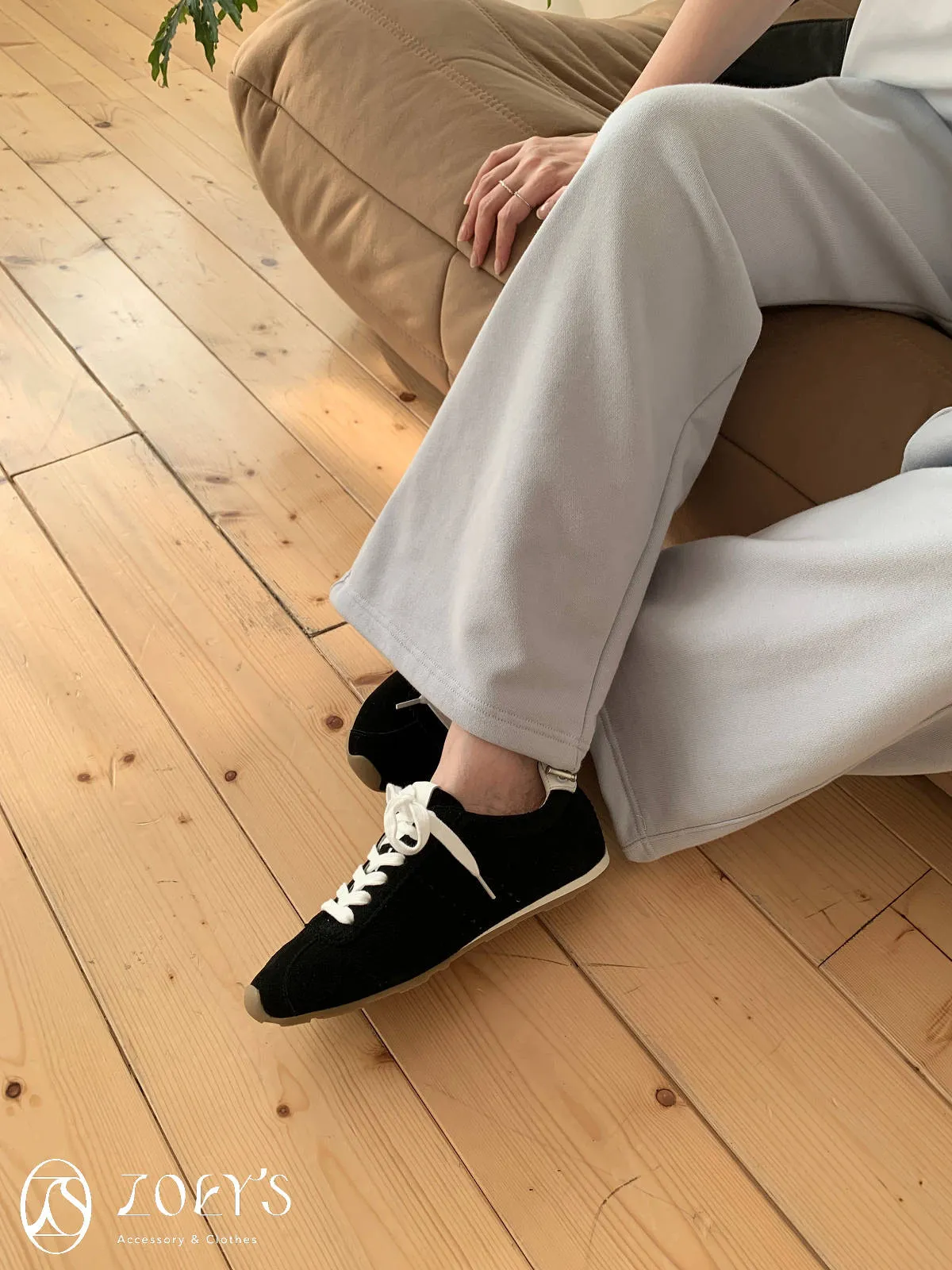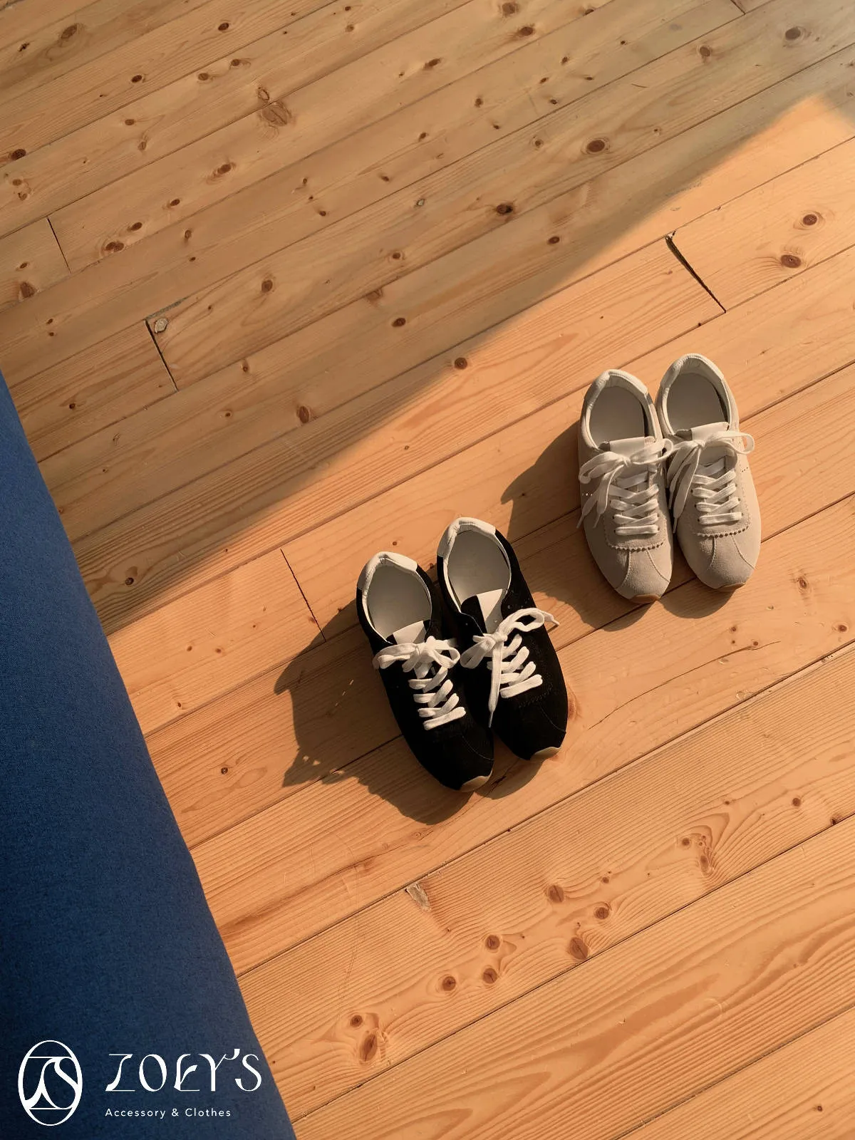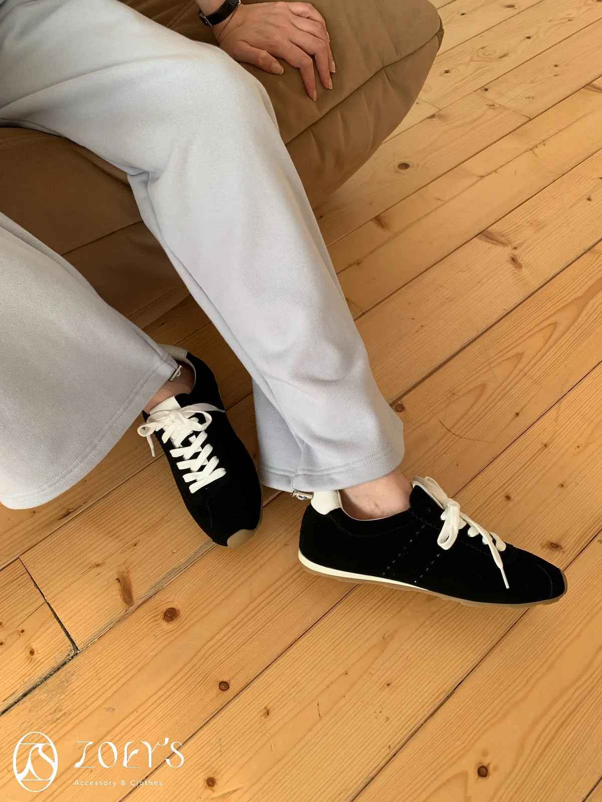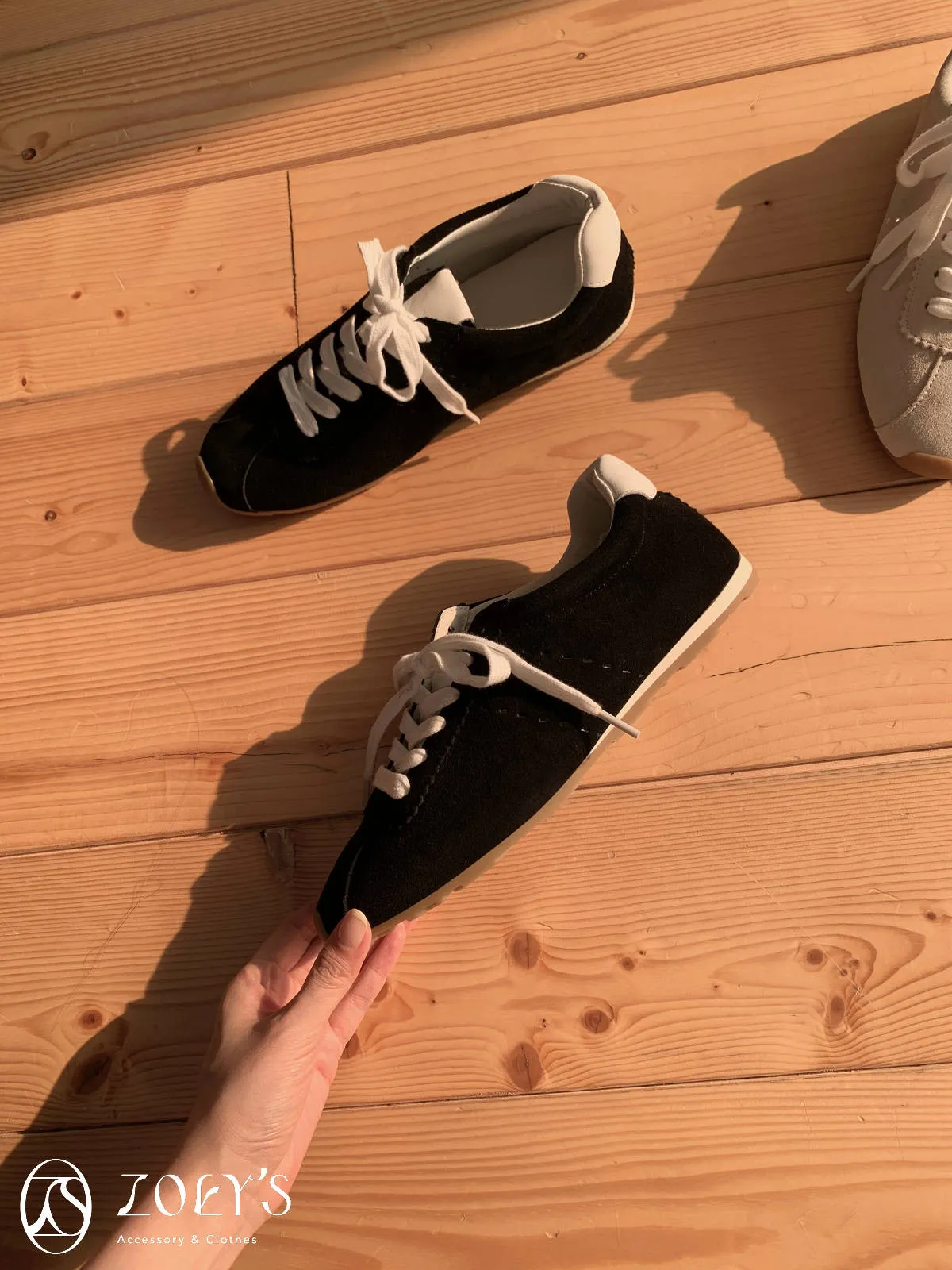 輕盈牛皮綁帶鞋 黑/米 23-25