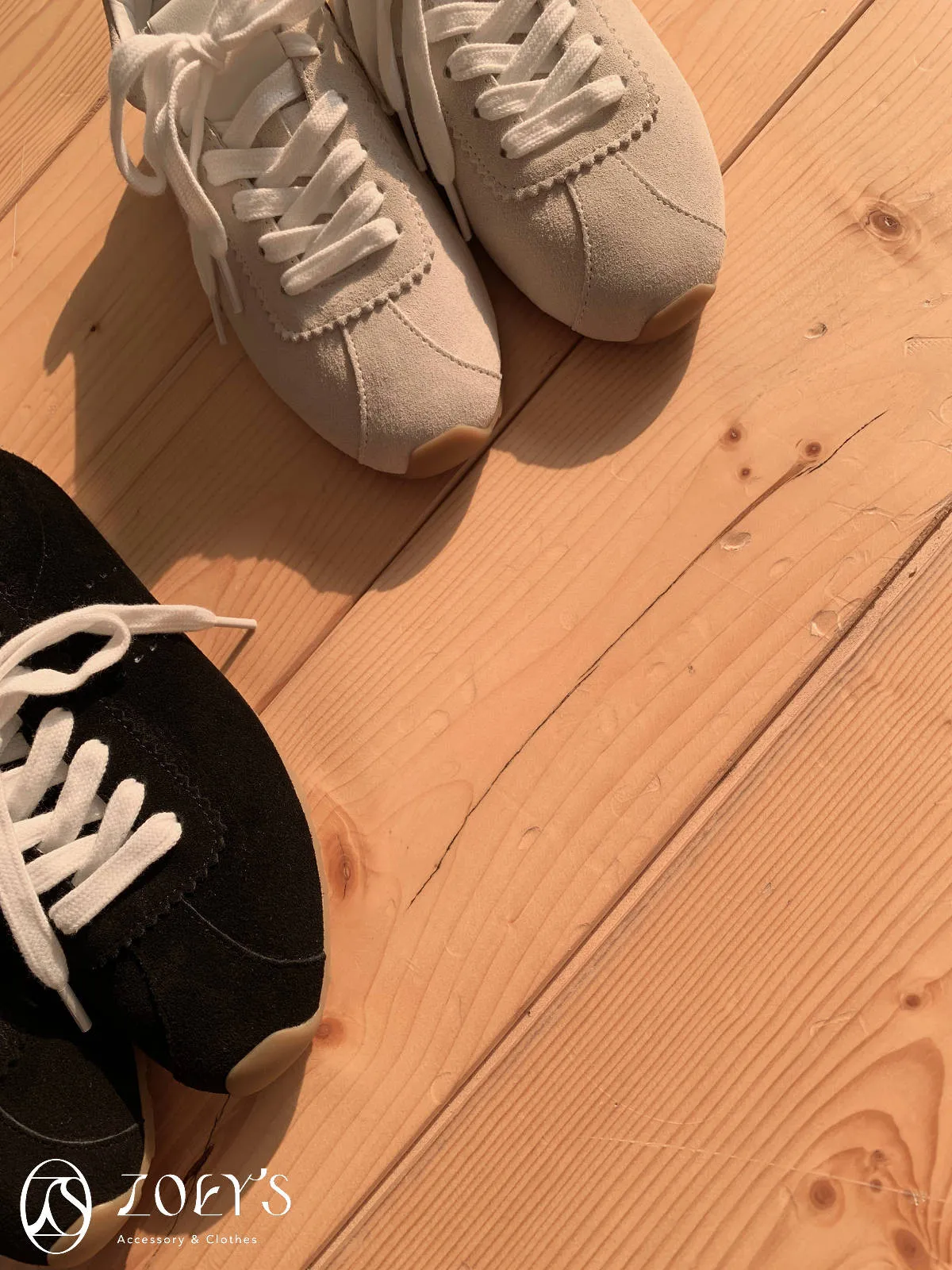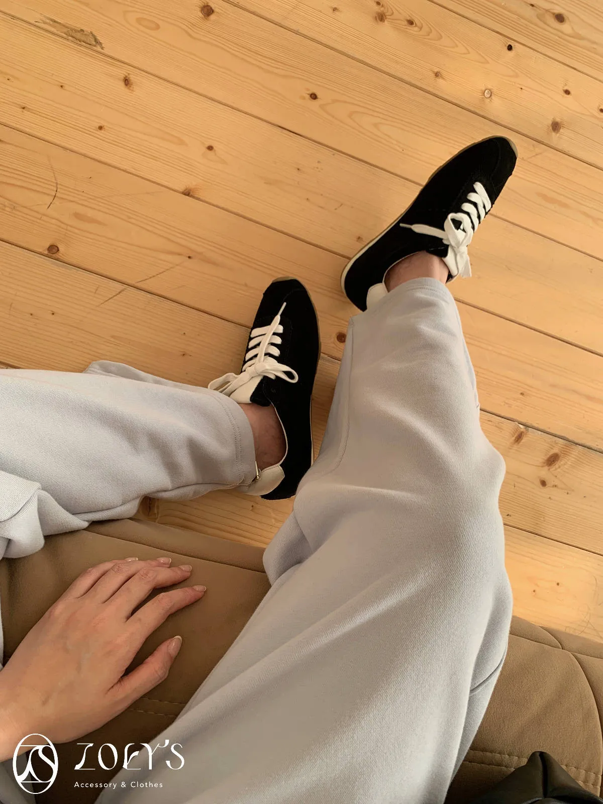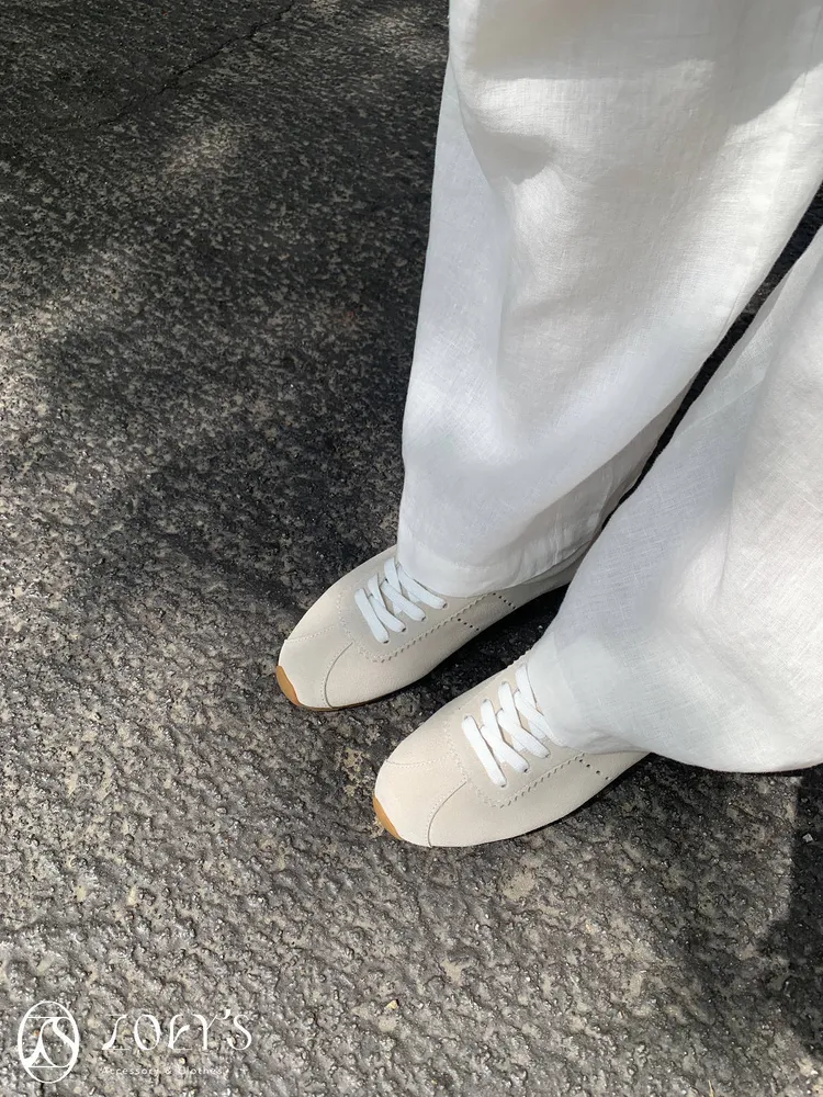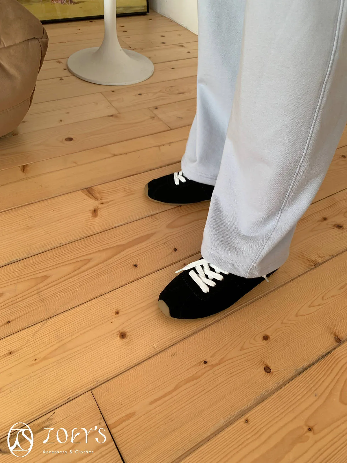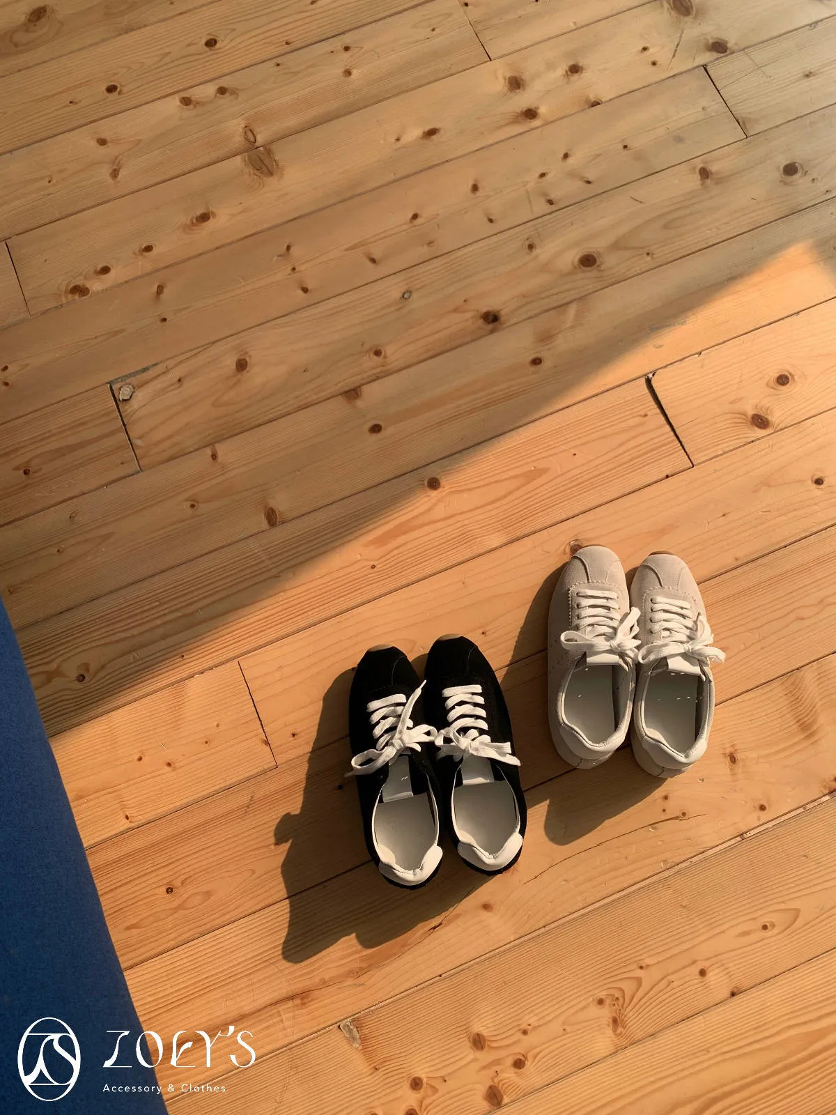 輕盈牛皮綁帶鞋 黑/米 23-25