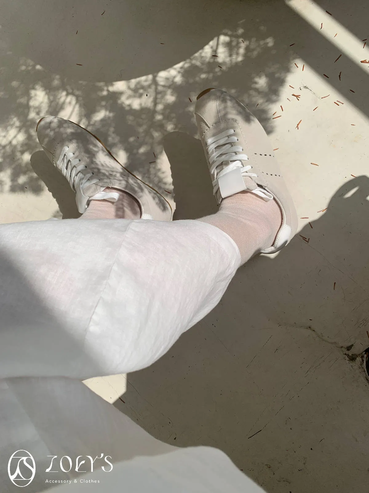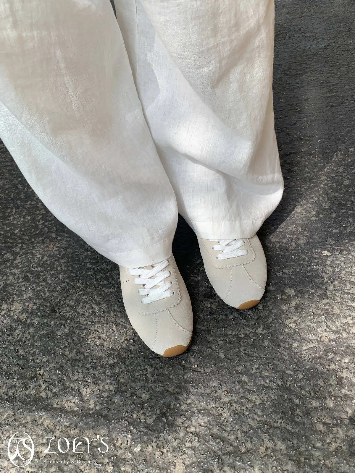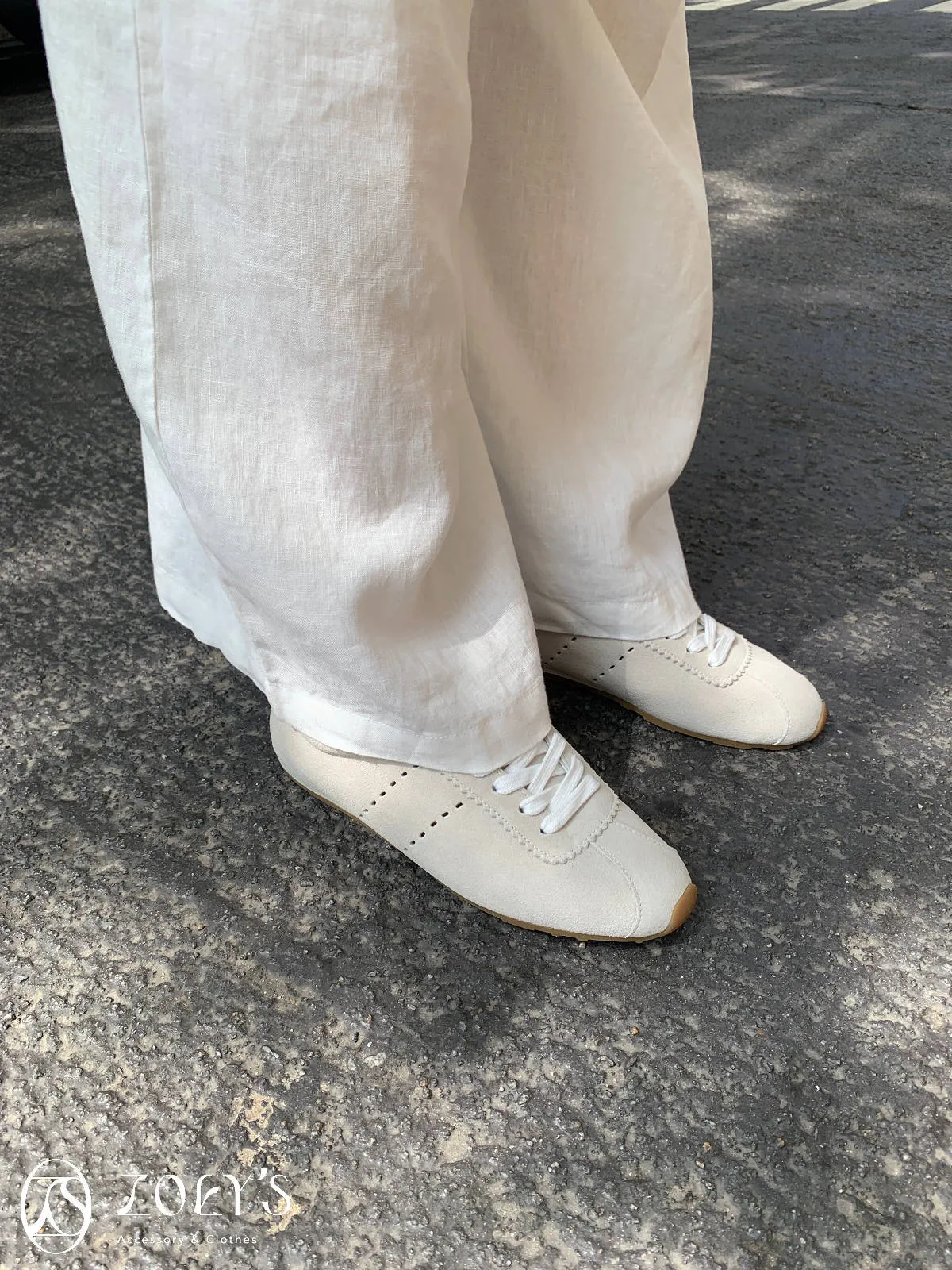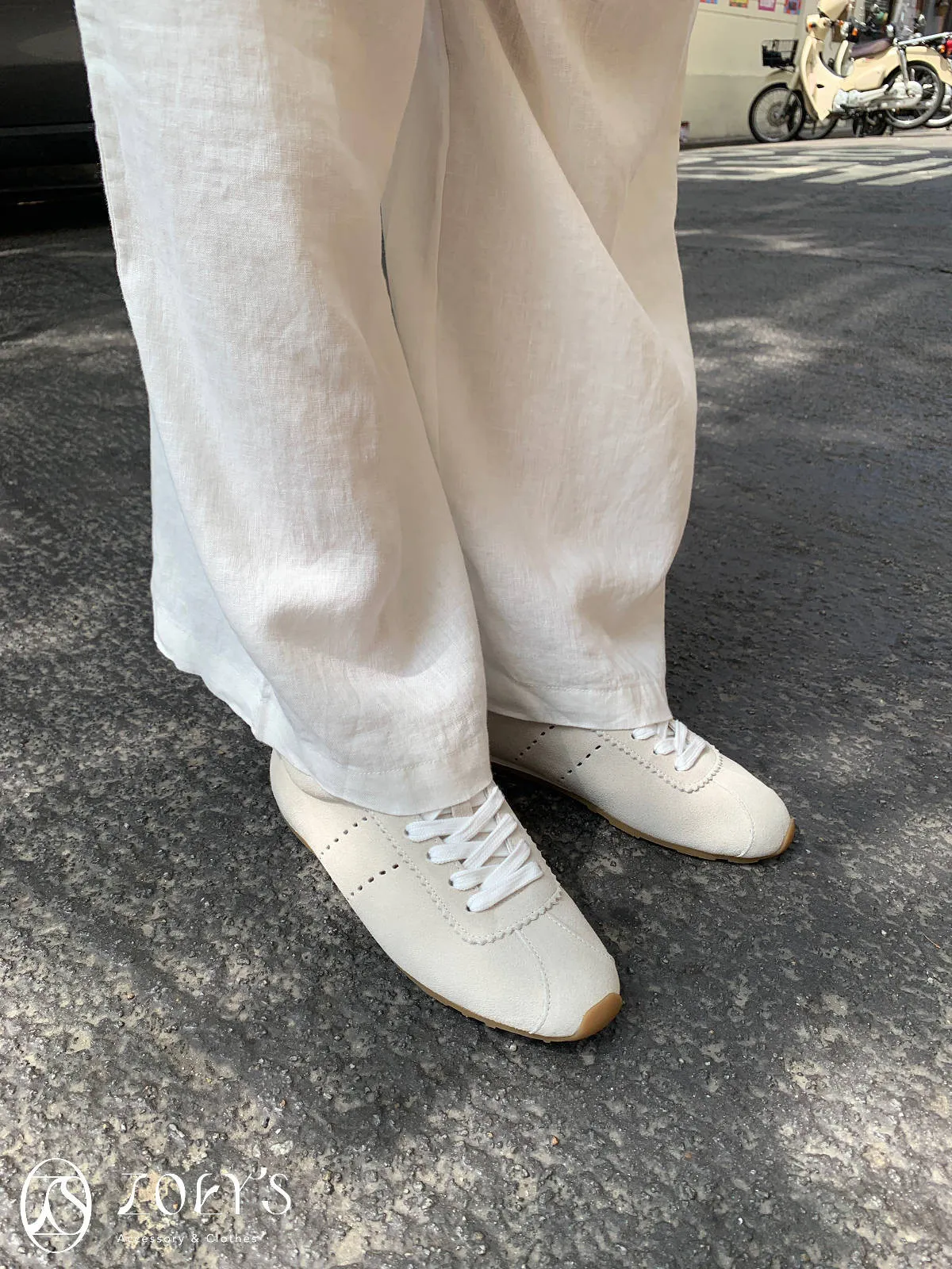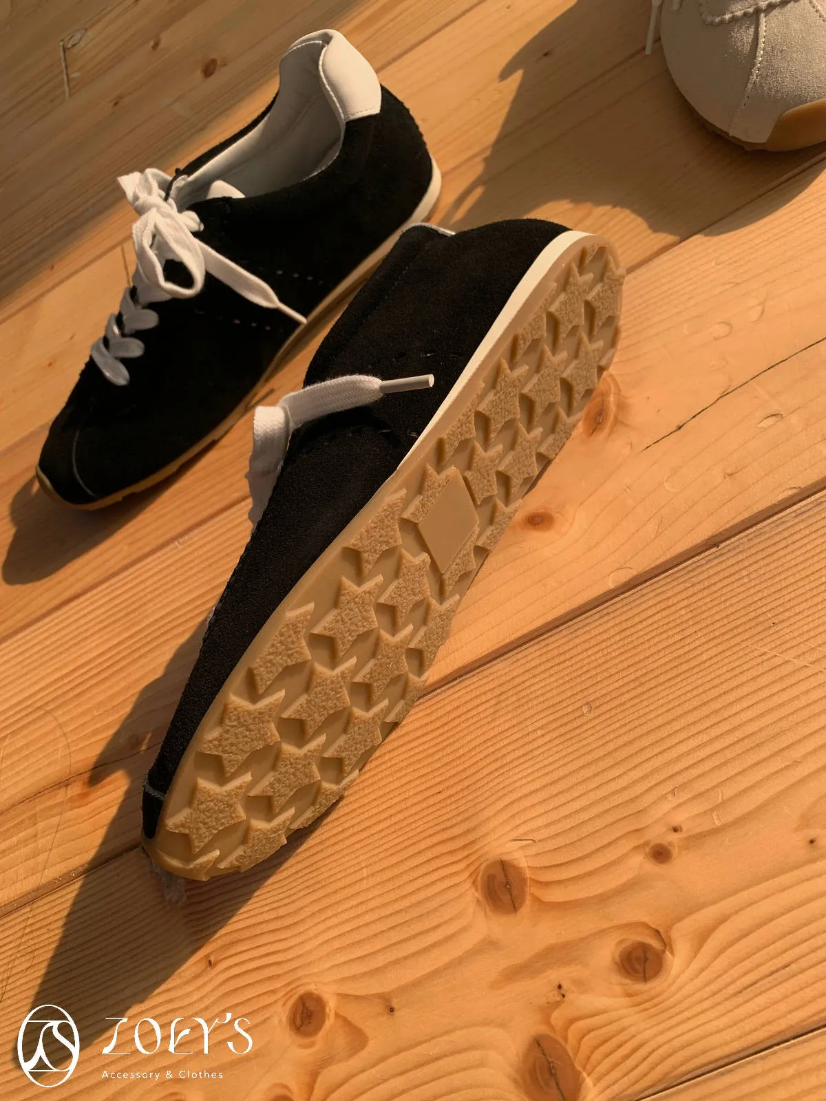 輕盈牛皮綁帶鞋 黑/米 23-25