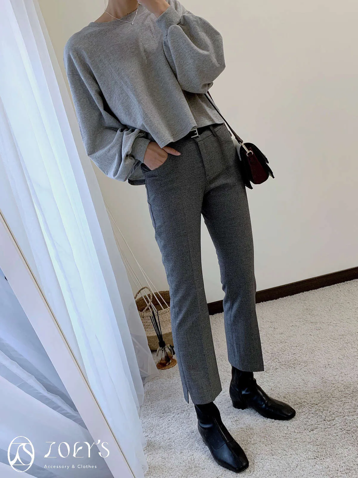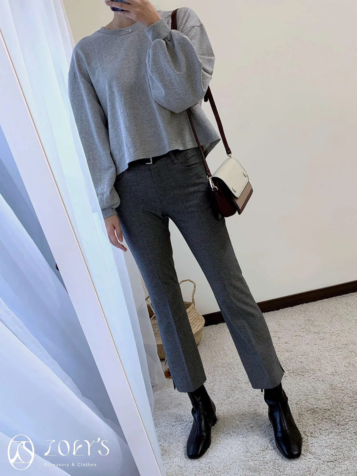 正韓 意外顯瘦腰鬆緊直坑紋開衩裙