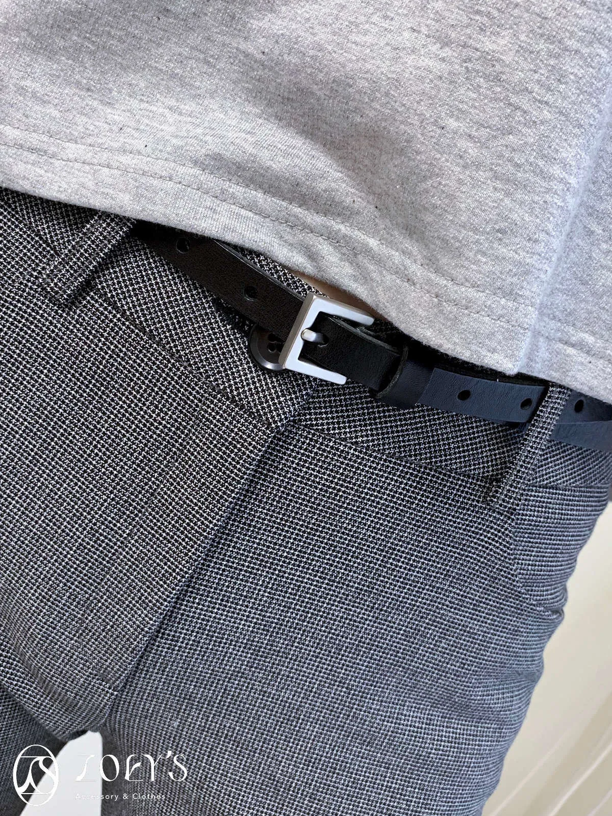 正韓 霧銀小方扣真皮腰帶 現貨黑