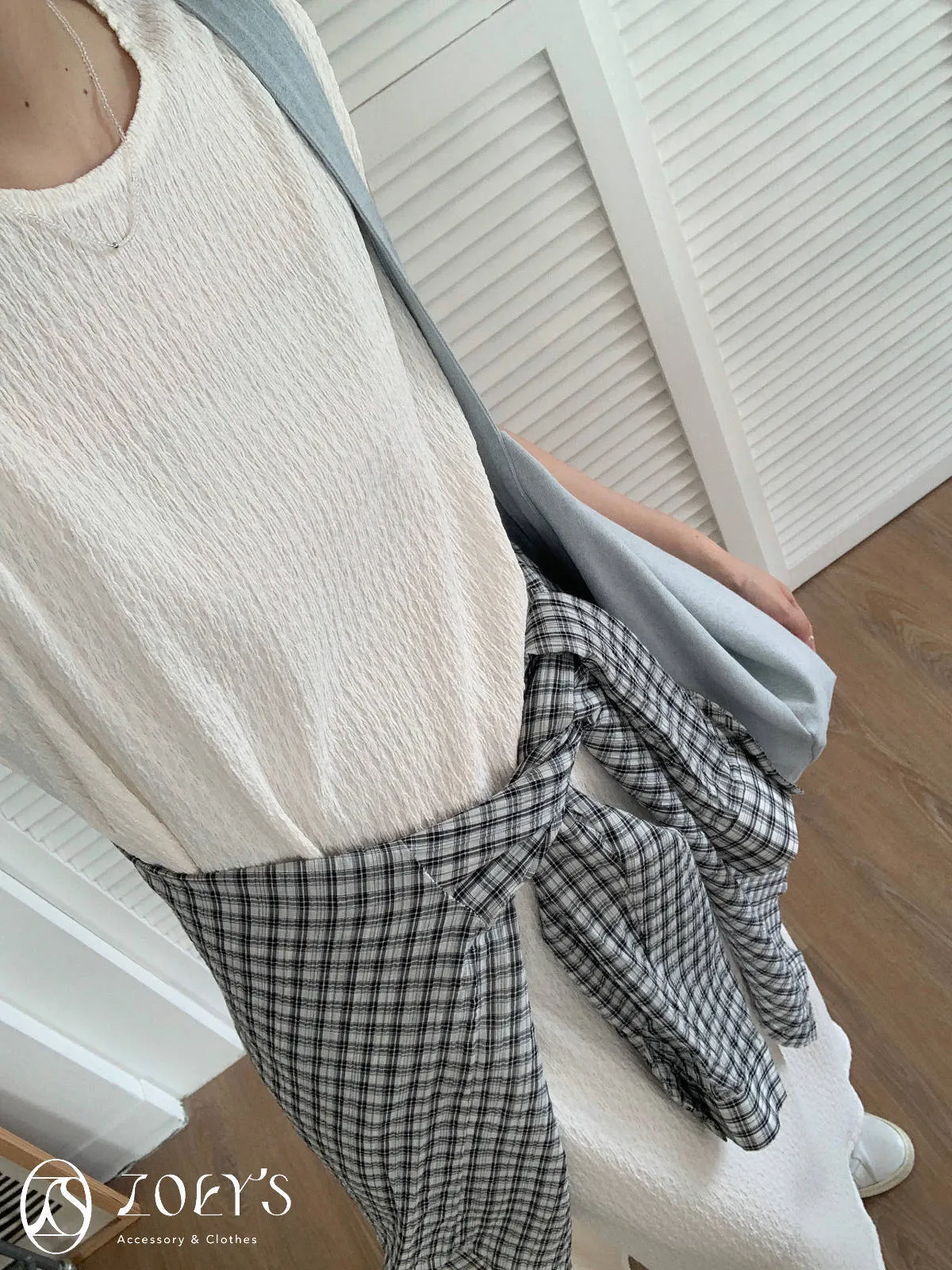 正韓 意外顯瘦腰鬆緊直坑紋開衩裙
