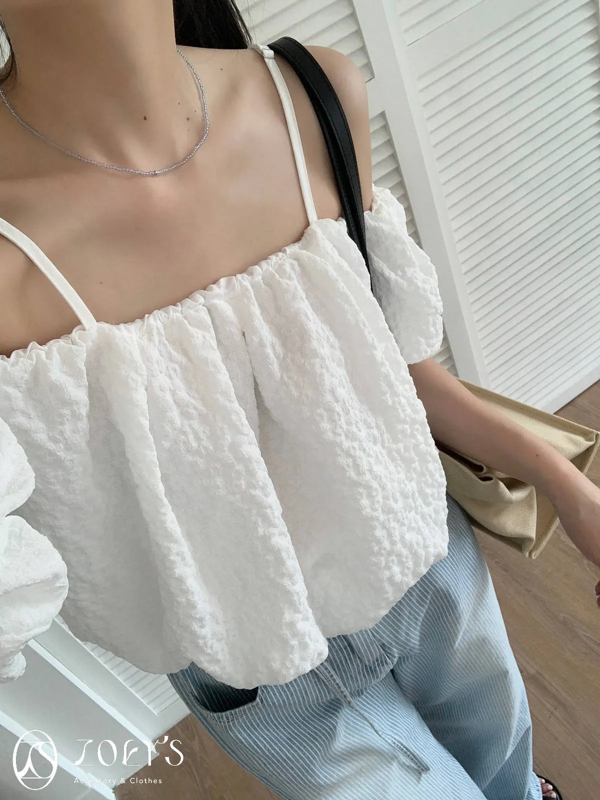 正韓 一字領細肩連袖泡泡上衣 現貨