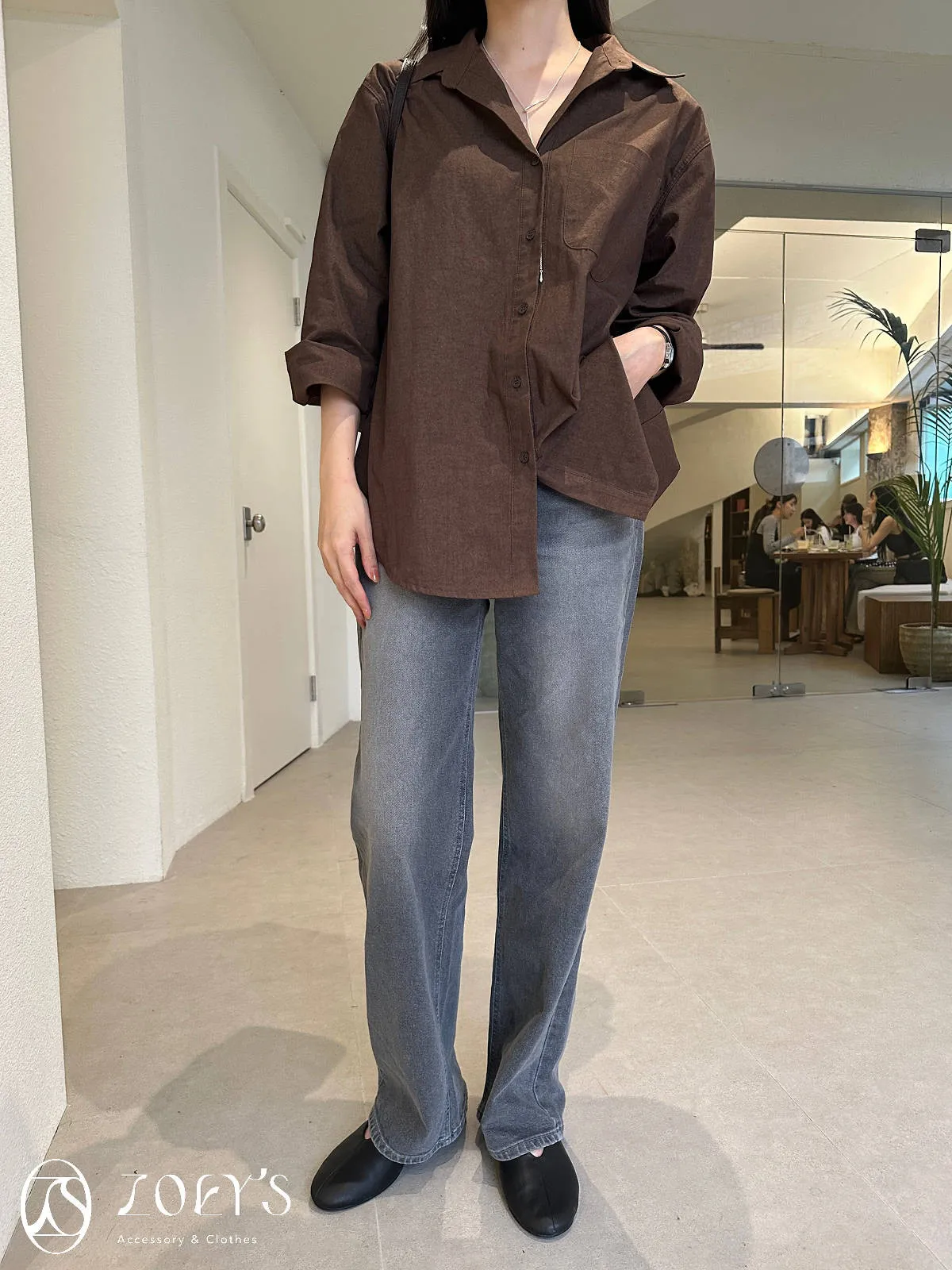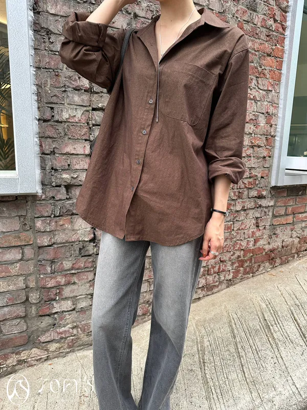 正韓 秋色挺版長襯衫 現貨藍/咖/綠