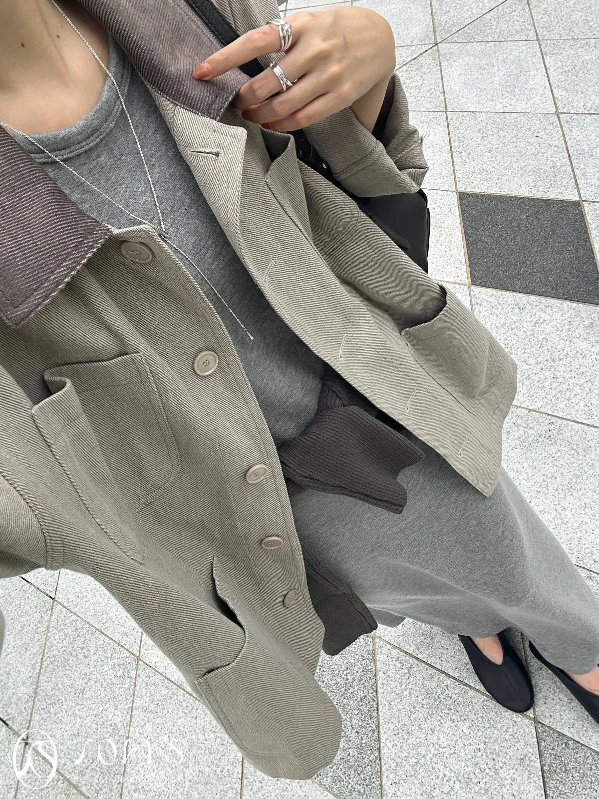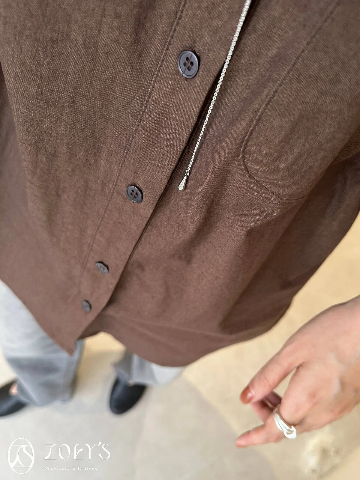 正韓 配色領圓扣外套 現貨墨/摩卡