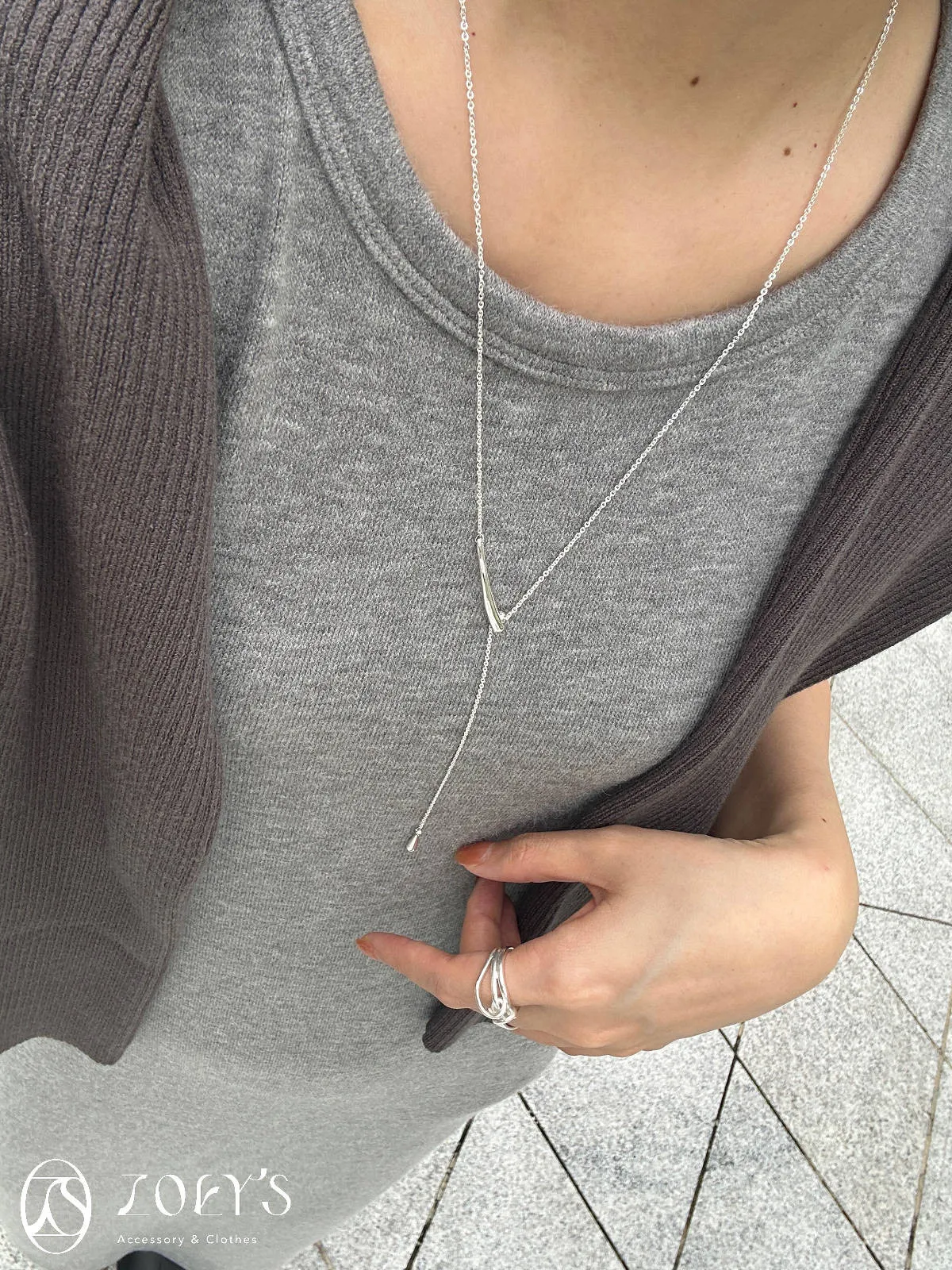 正韓 可調式小水滴Y字鍊 現貨銀