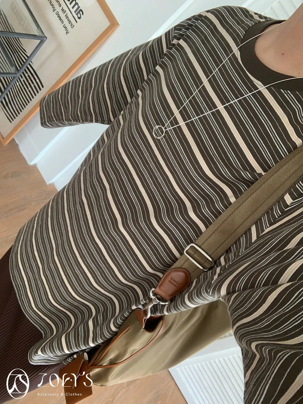 正韓 夾心配色橫紋長版上衣 現貨綠