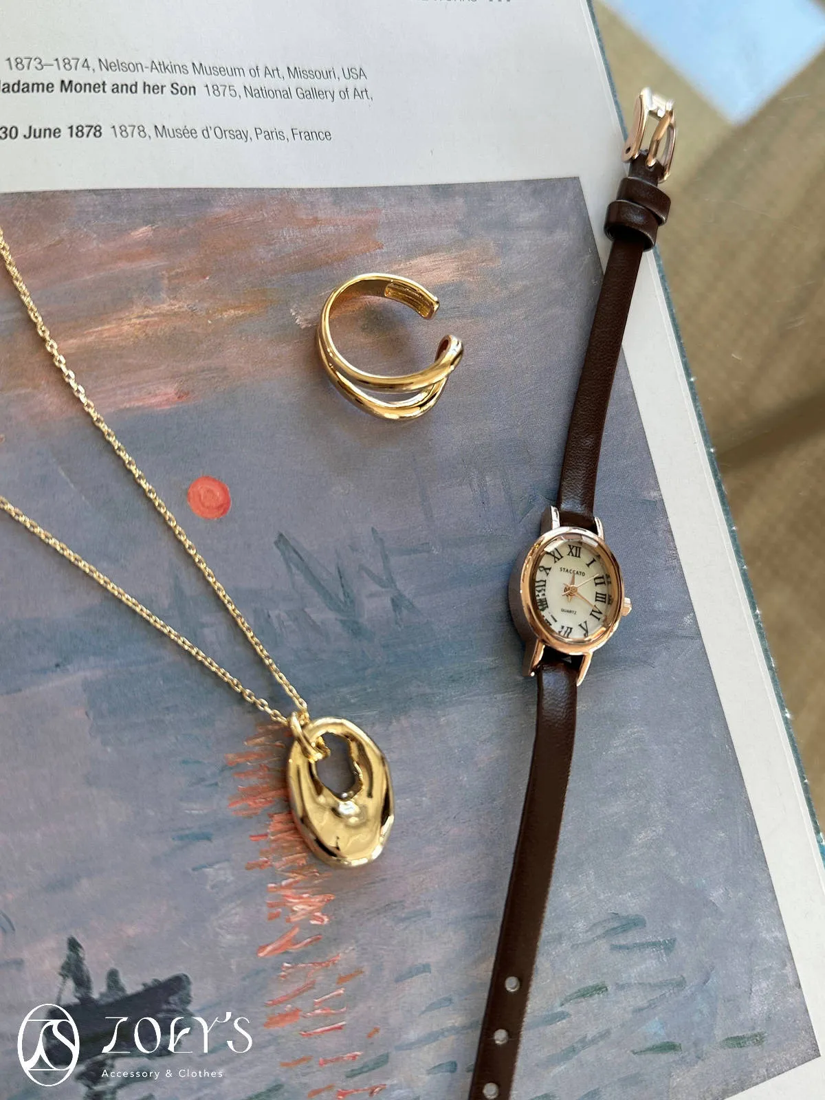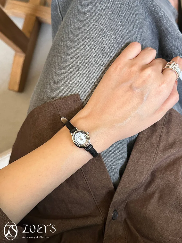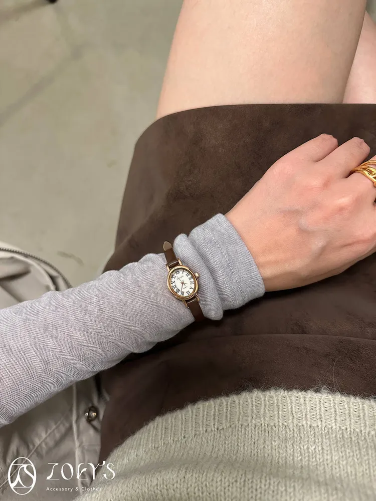 韓國品牌STACCATO 切面橢圓真皮錶 現貨黑/深咖