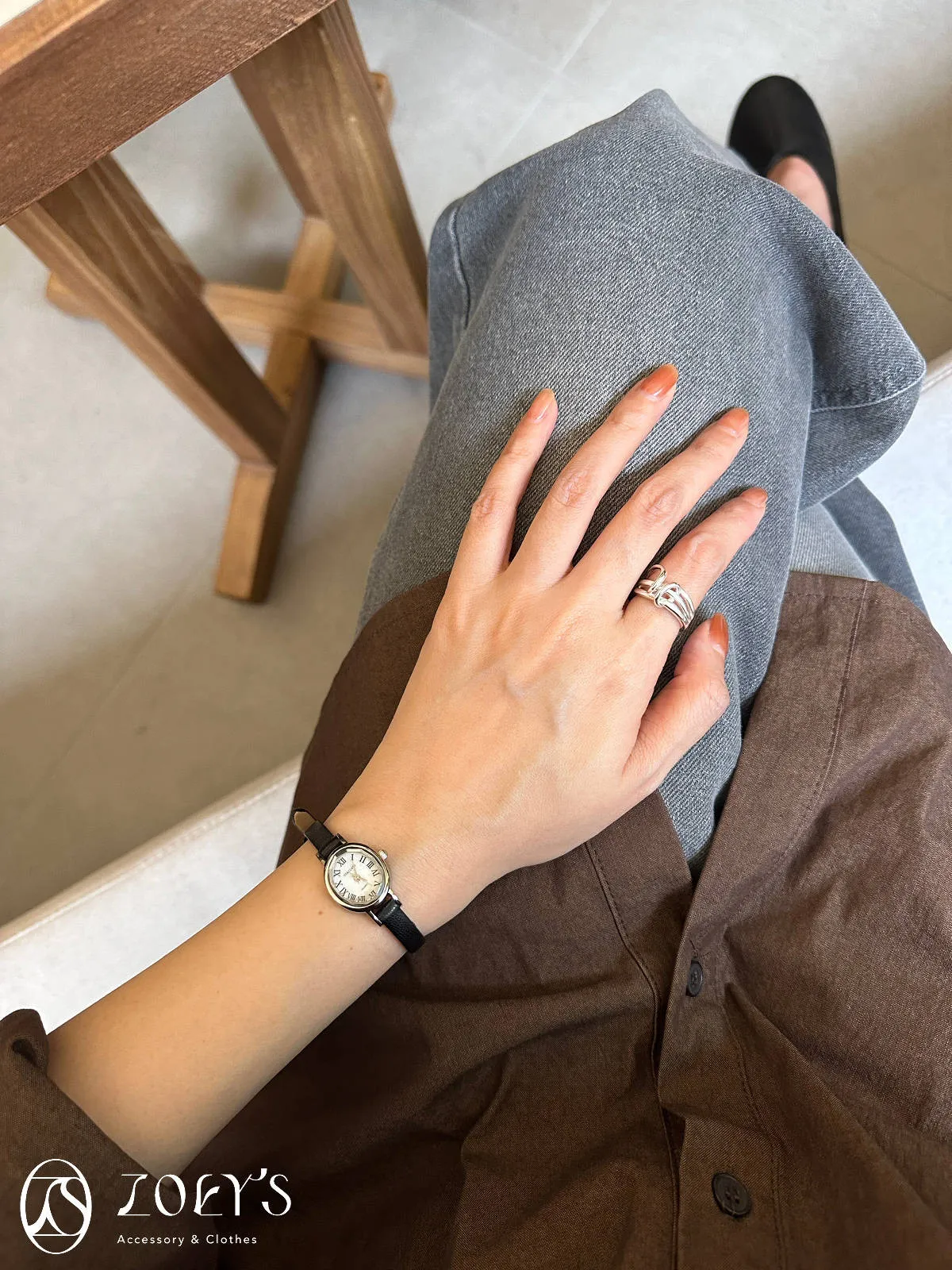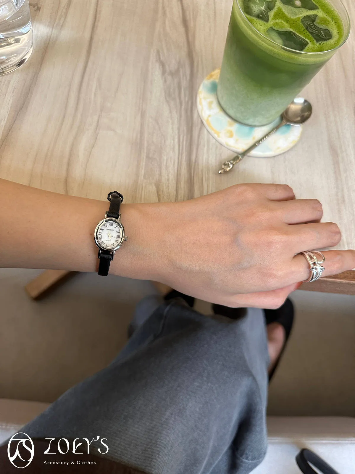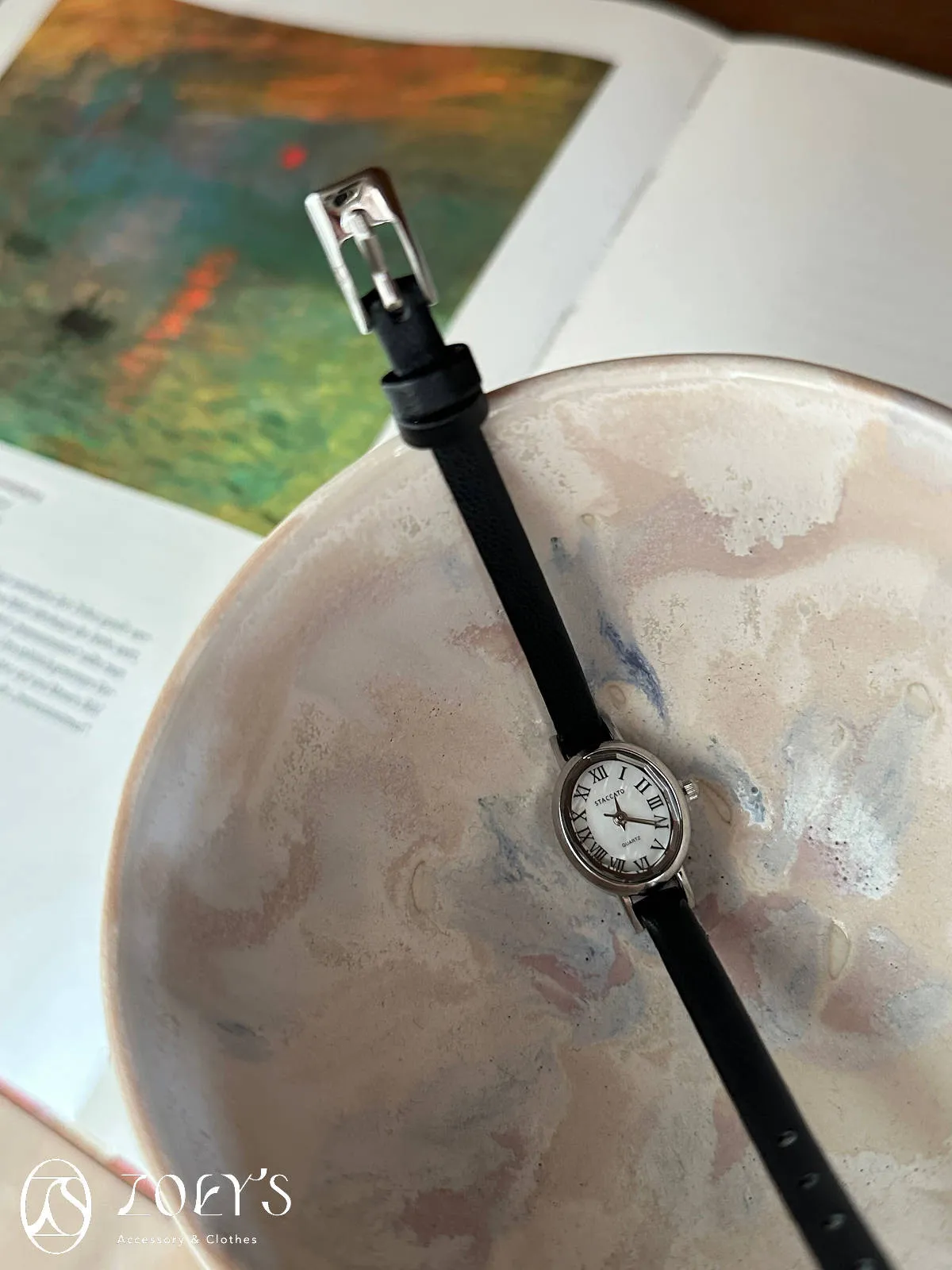 韓國品牌STACCATO 切面橢圓真皮錶 現貨黑/深咖