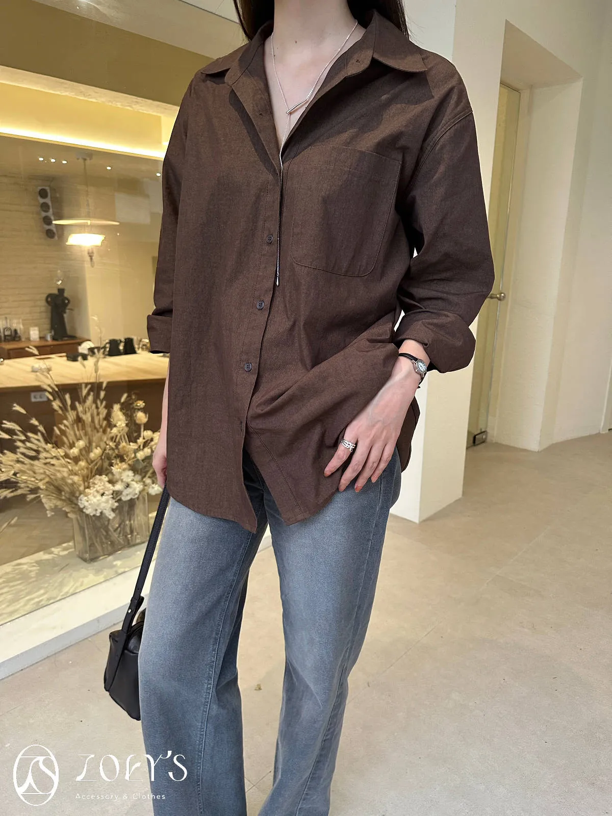 正韓 秋色挺版長襯衫 現貨藍/咖/綠