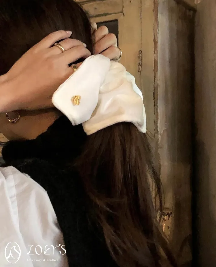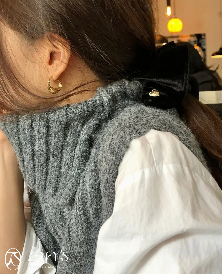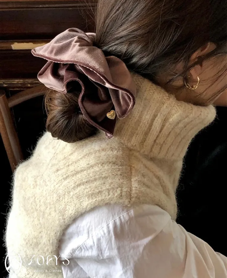 正韓 愛心綴飾絨質髮圈 黑/白/咖