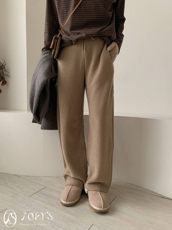 正韓 巧克力斜紋內短絨寬褲 現貨M/L