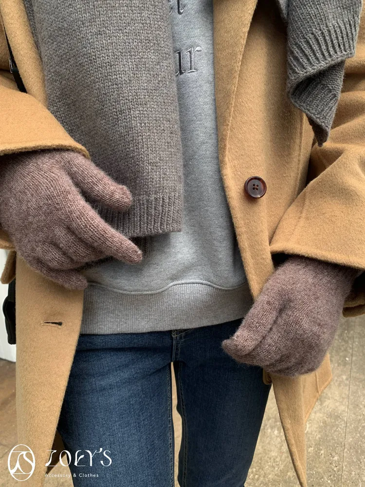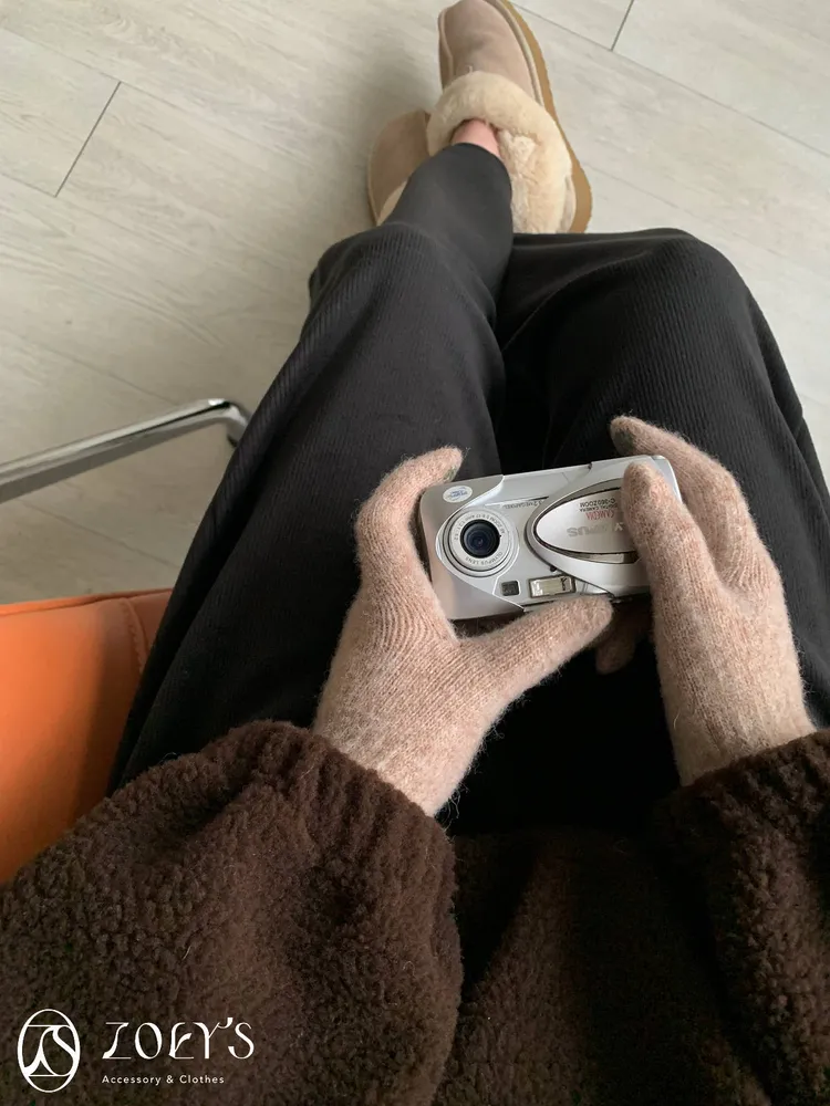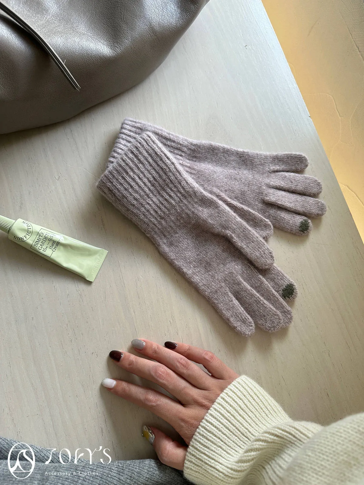 正韓 喀什米爾羊毛觸控手套 灰/咖/卡其/粉紫
