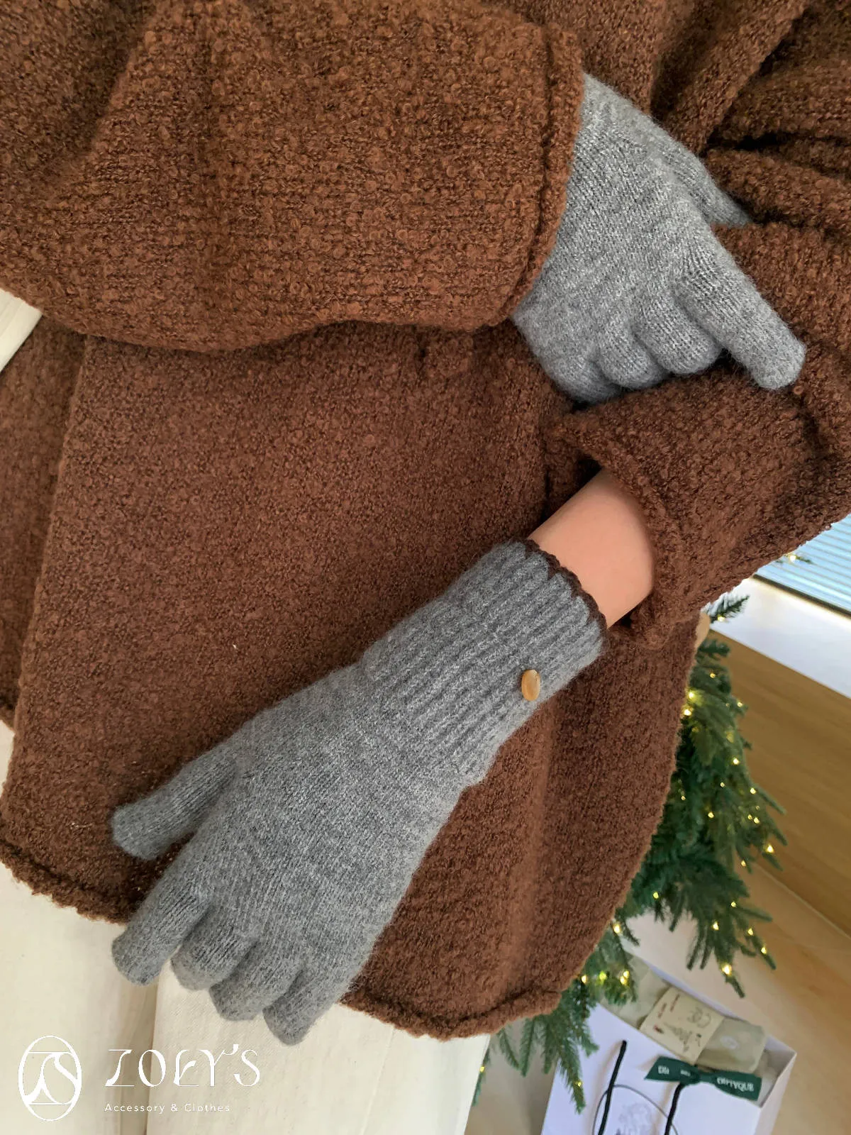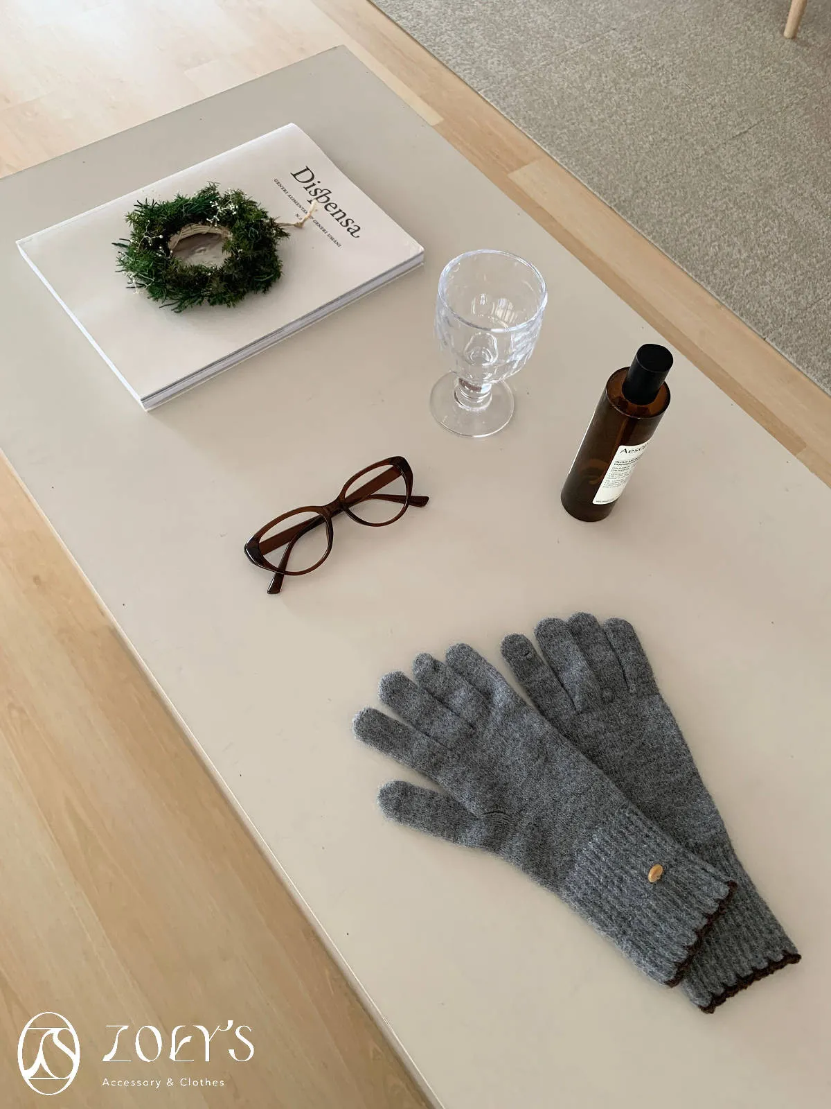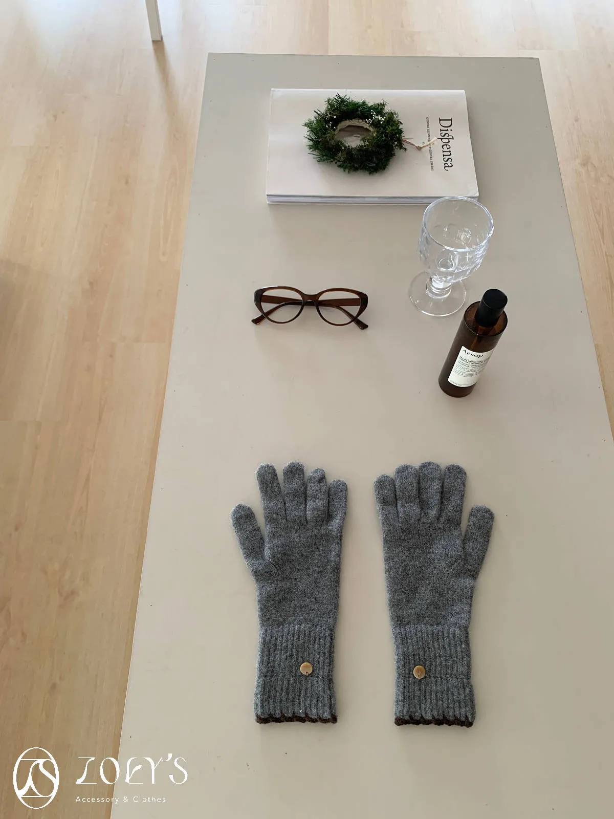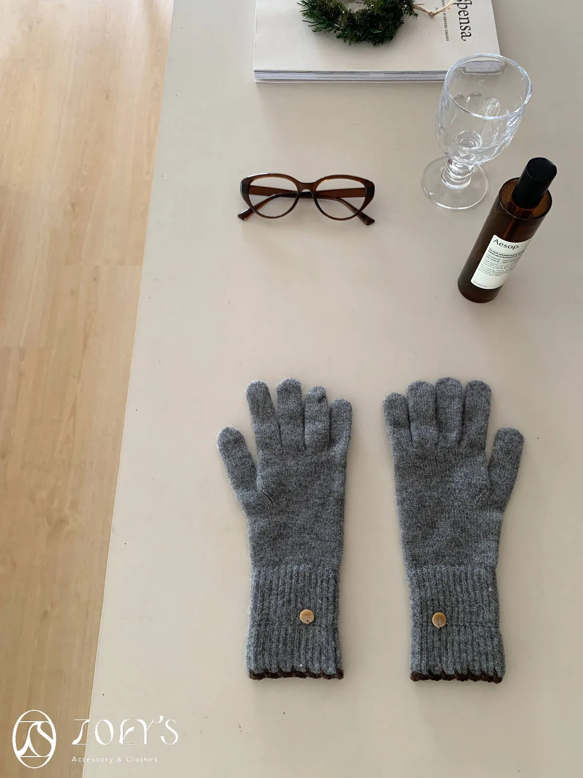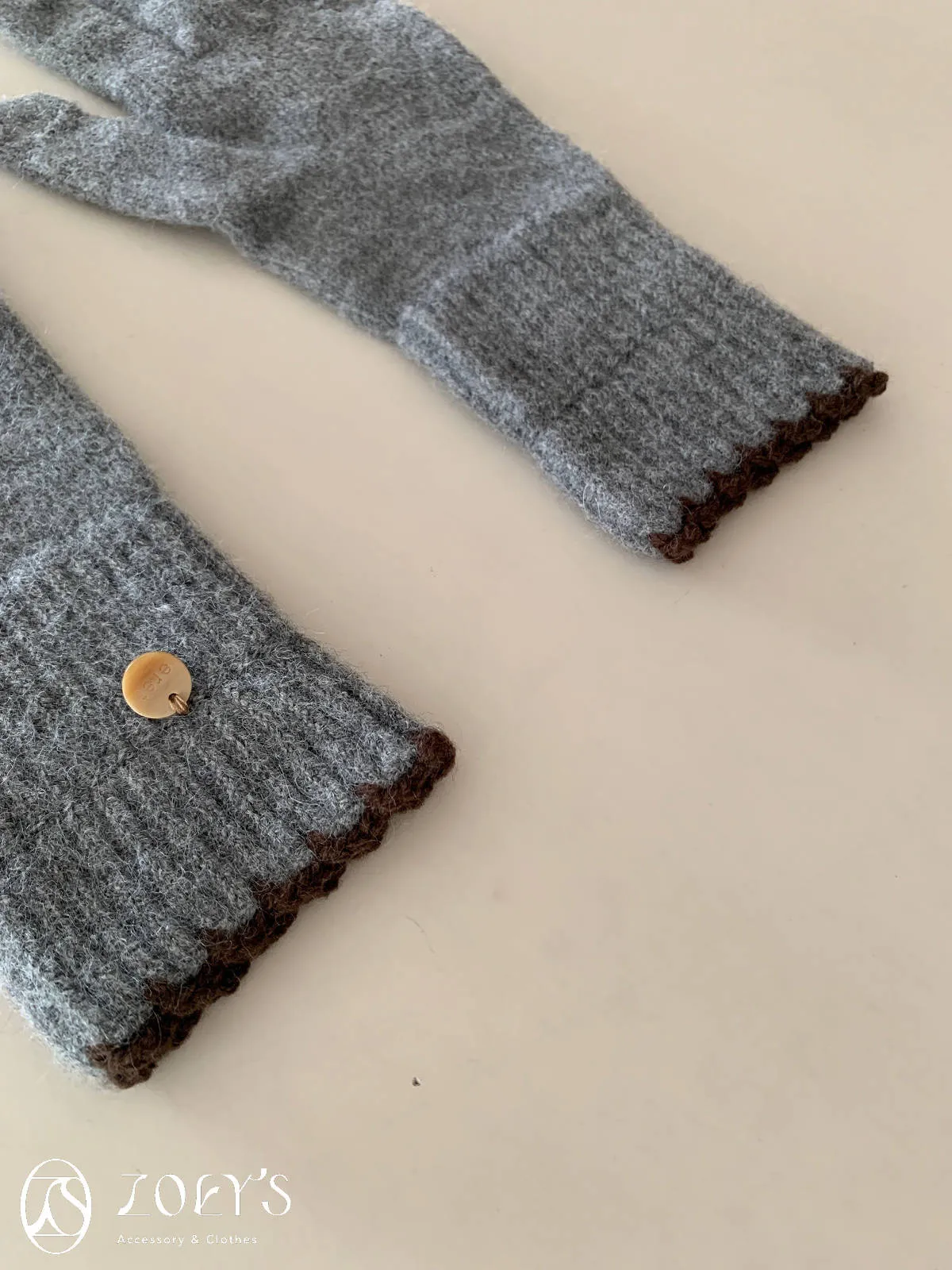 正韓 優雅配色滾邊羊毛手套 藍/灰