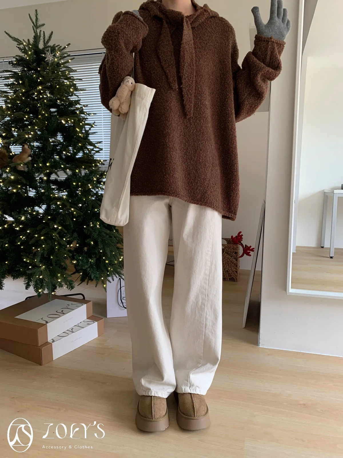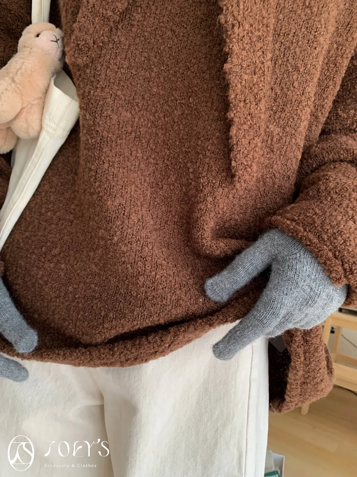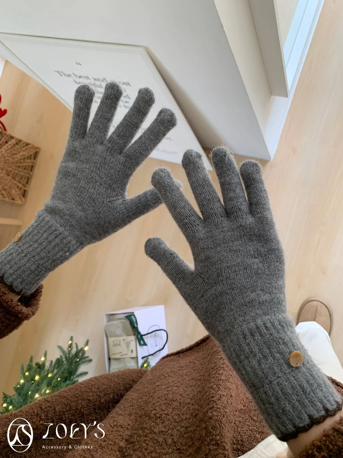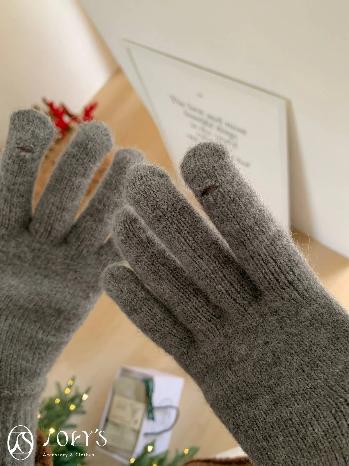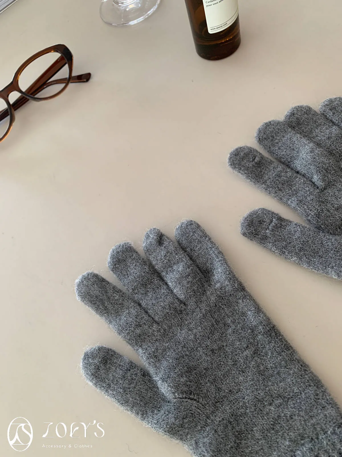 正韓 優雅配色滾邊羊毛手套 藍/灰