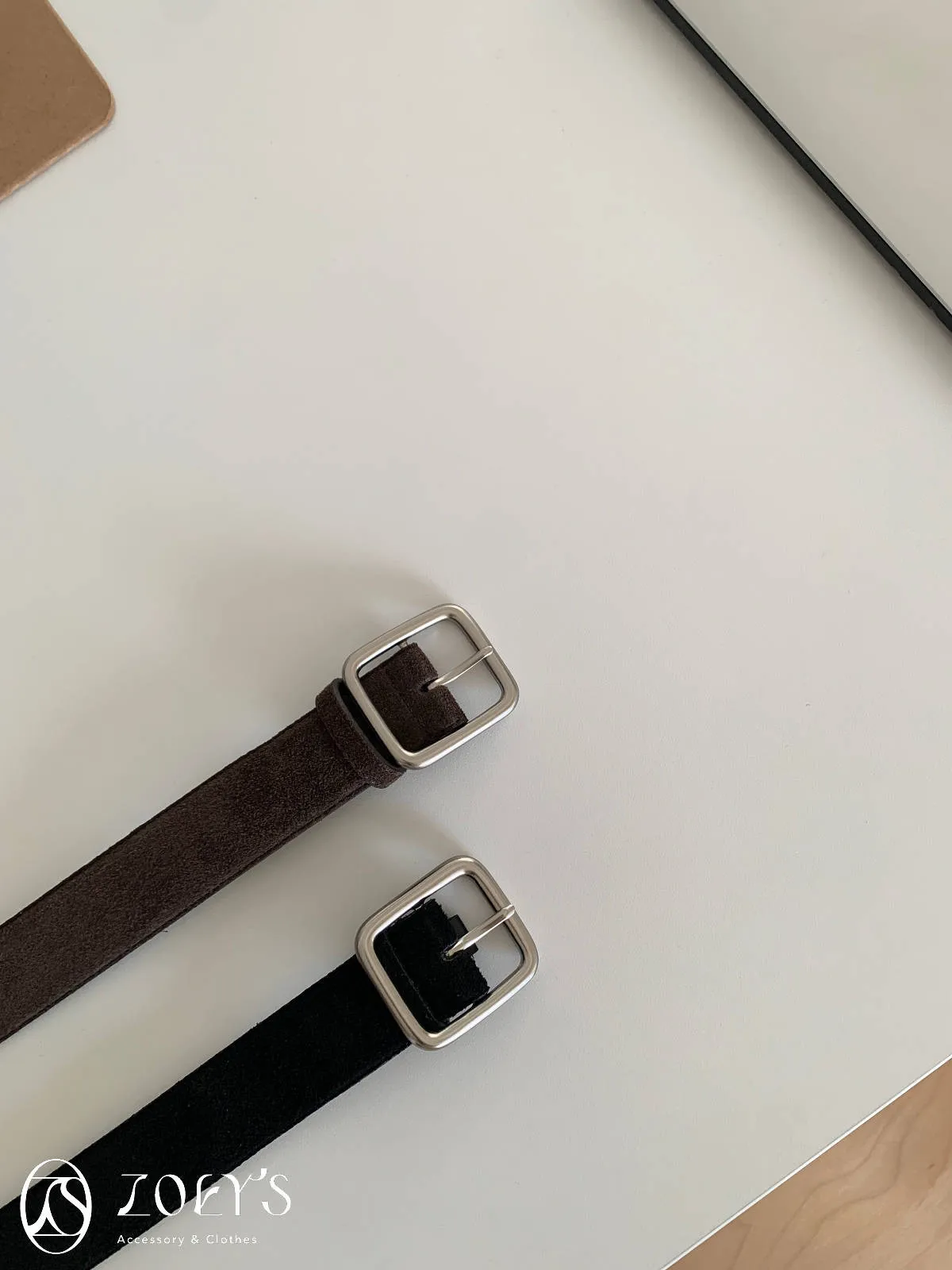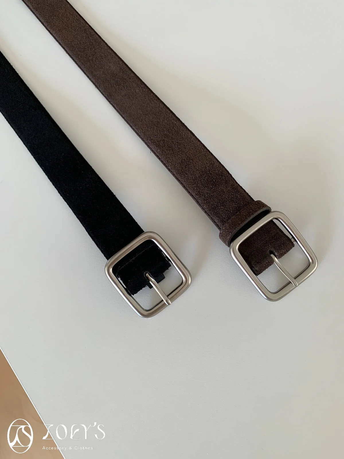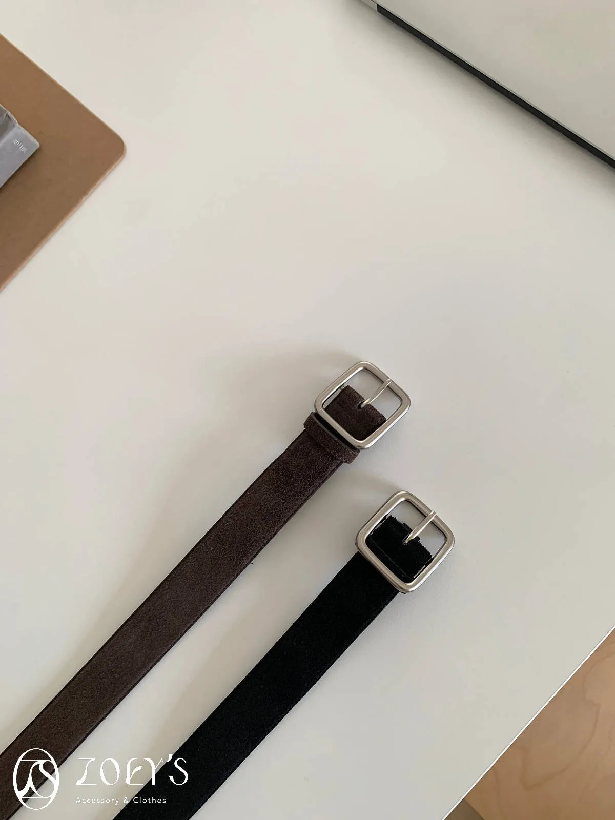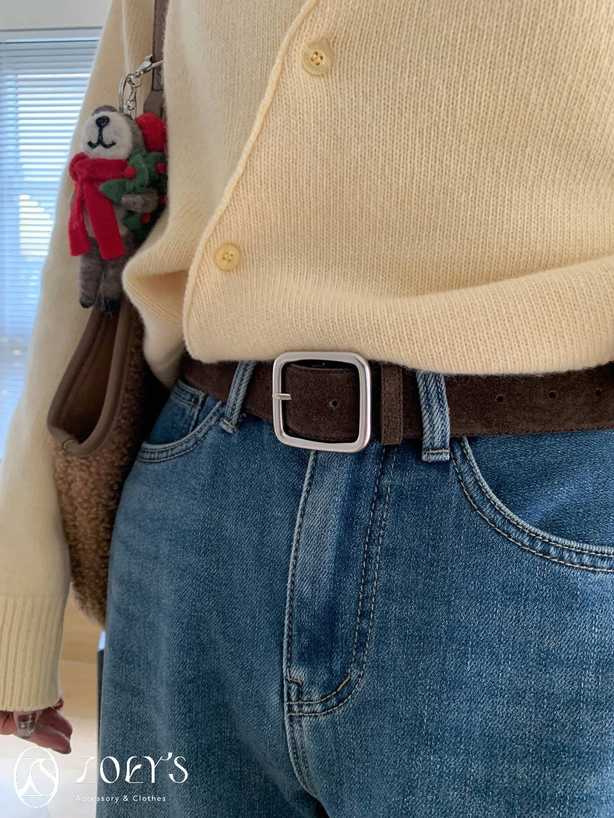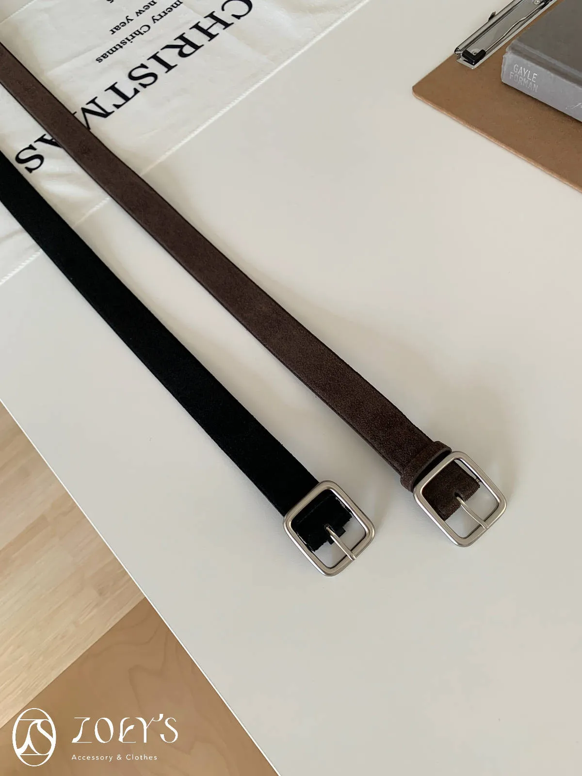 正韓 麂皮弧形方扣腰帶 黑/深咖
