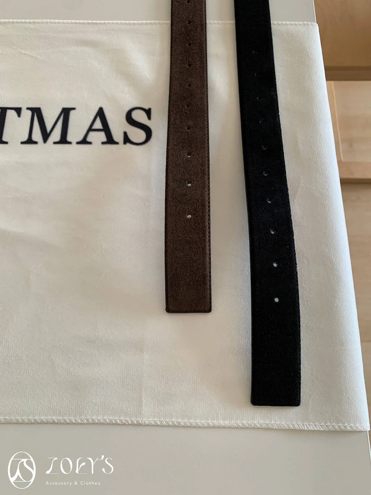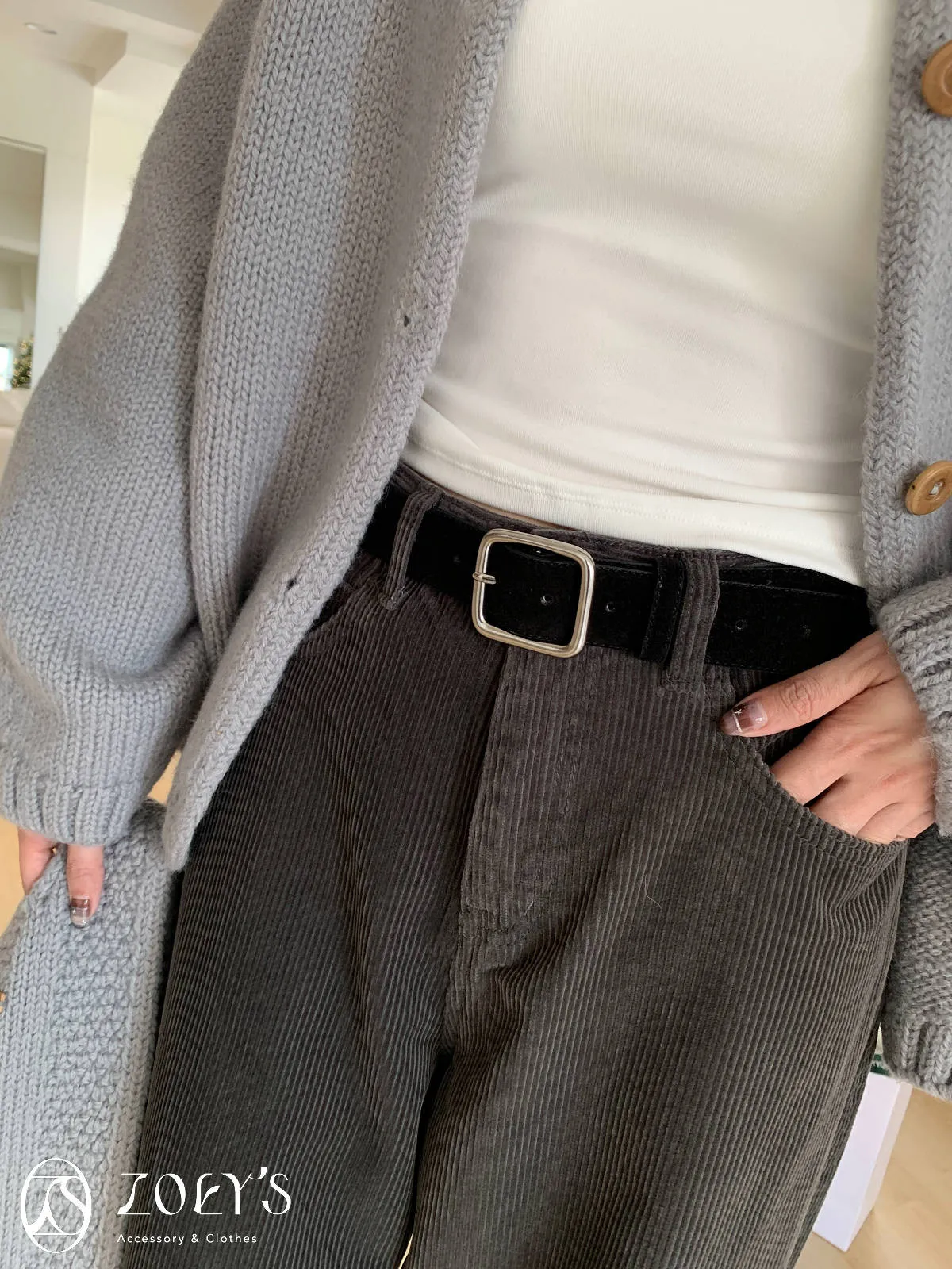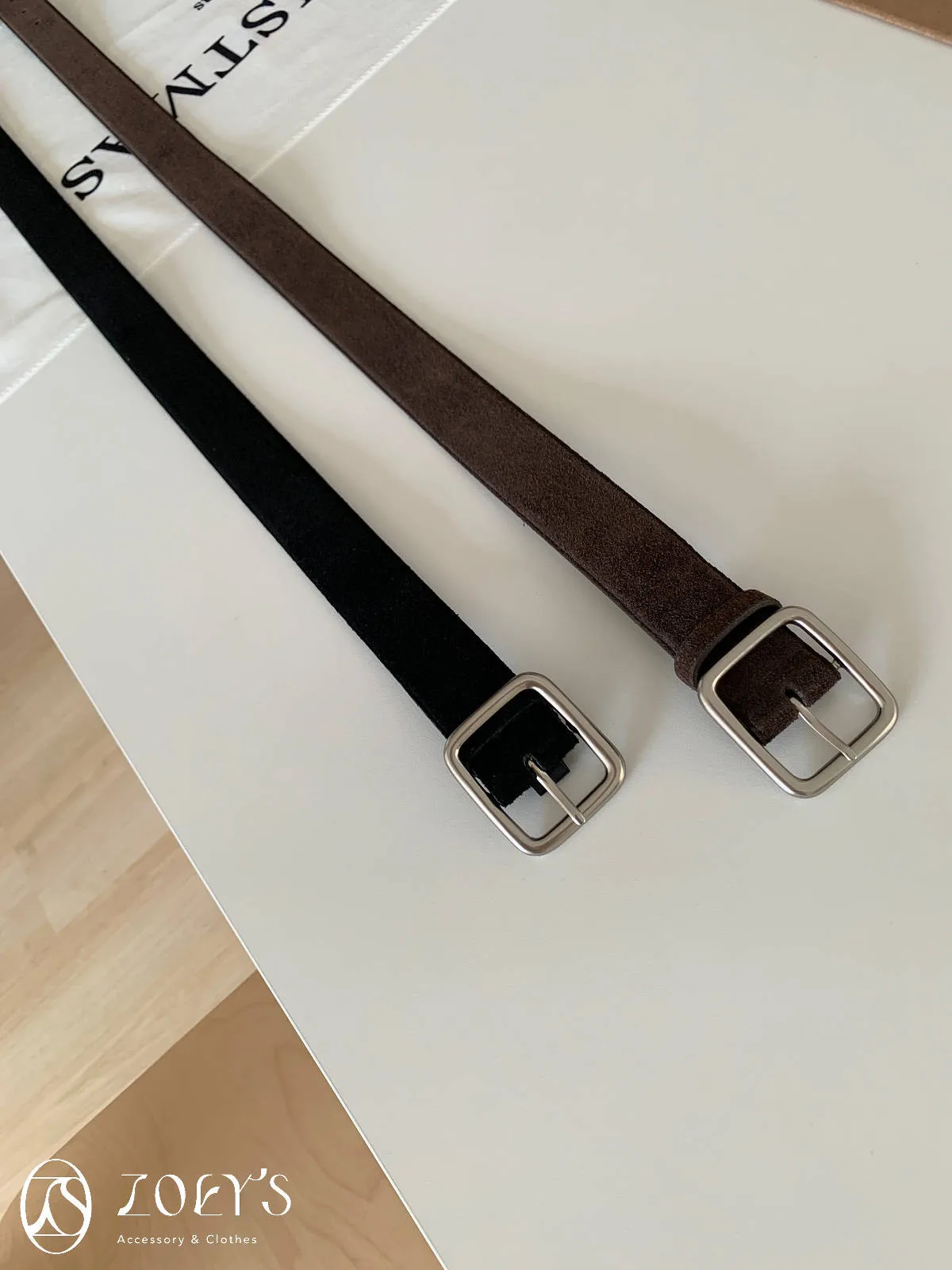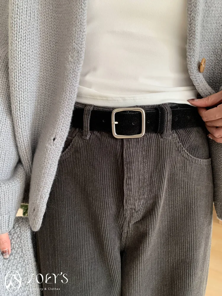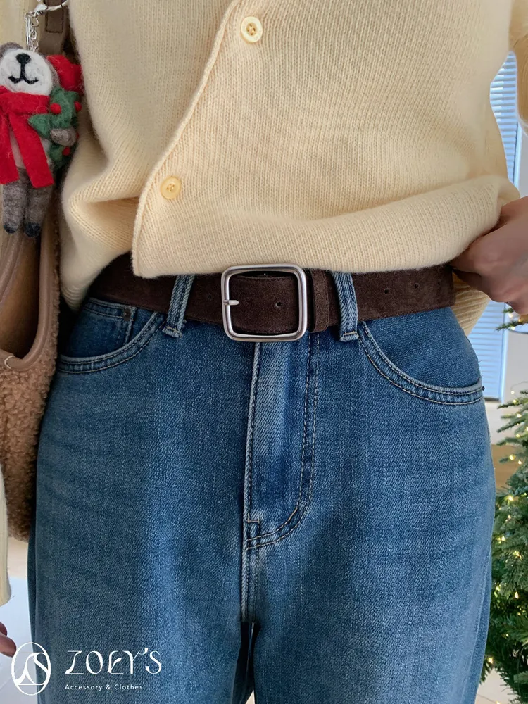 正韓 麂皮弧形方扣腰帶 黑/深咖